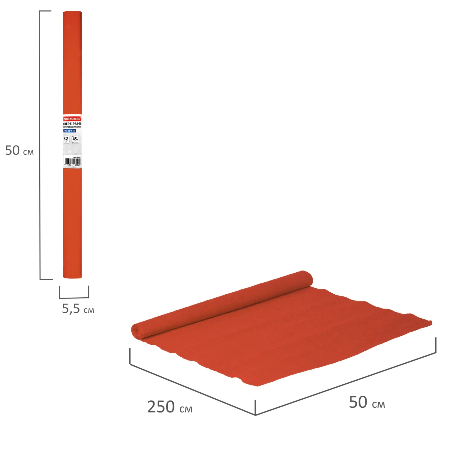 Бумага гофрированная/креповая, 32 г/м2, 50×250 см, оранжевая, в рулоне, BRAUBERG, 126530