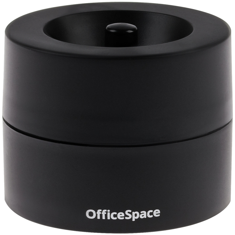 Удобная вместительная магнитная скрепочница OfficeSpace чёрного цвета предназначена для фиксации скрепок. Круглая форма изделия размером 60*72*72 мм впишется в любое рабочее пространство. Поставляется без скрепок и упакована в картонную коробку.