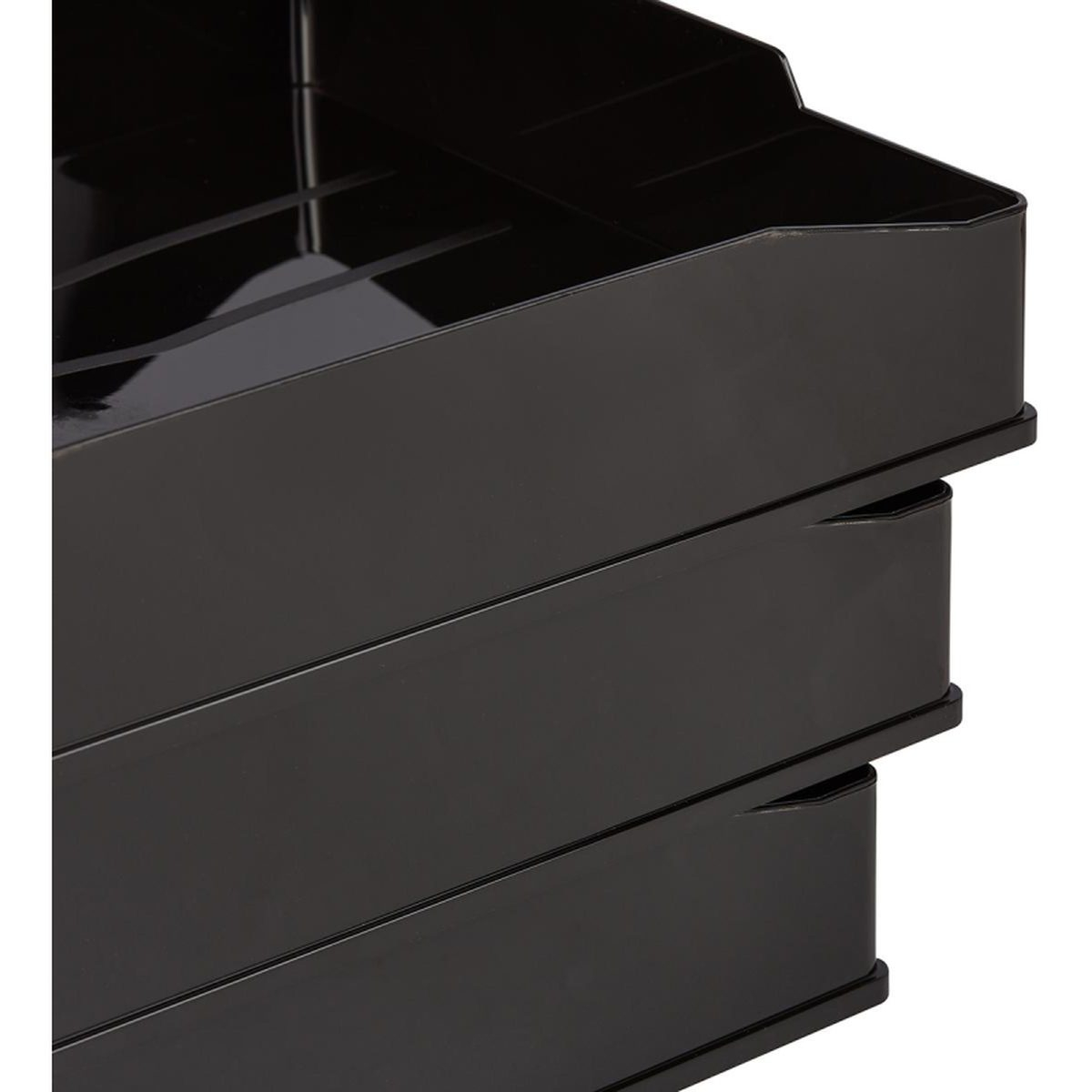 Лоток оригинального дизайна из лёгкого и прочного пластика. Приподнятая фронтальная часть лотка обеспечивает удобное изъятие документов из накопителя. Лотки можно устанавливать друг на друга.