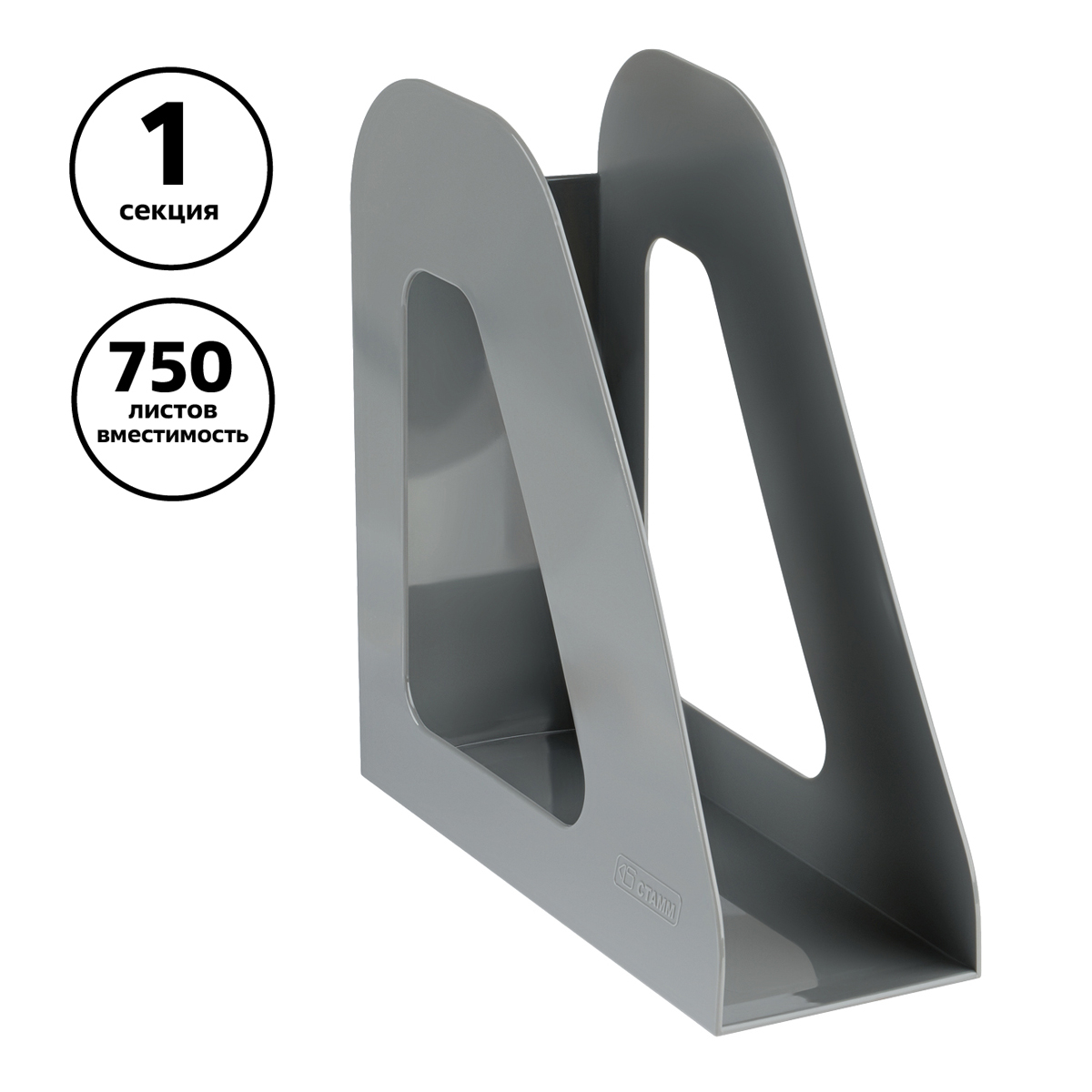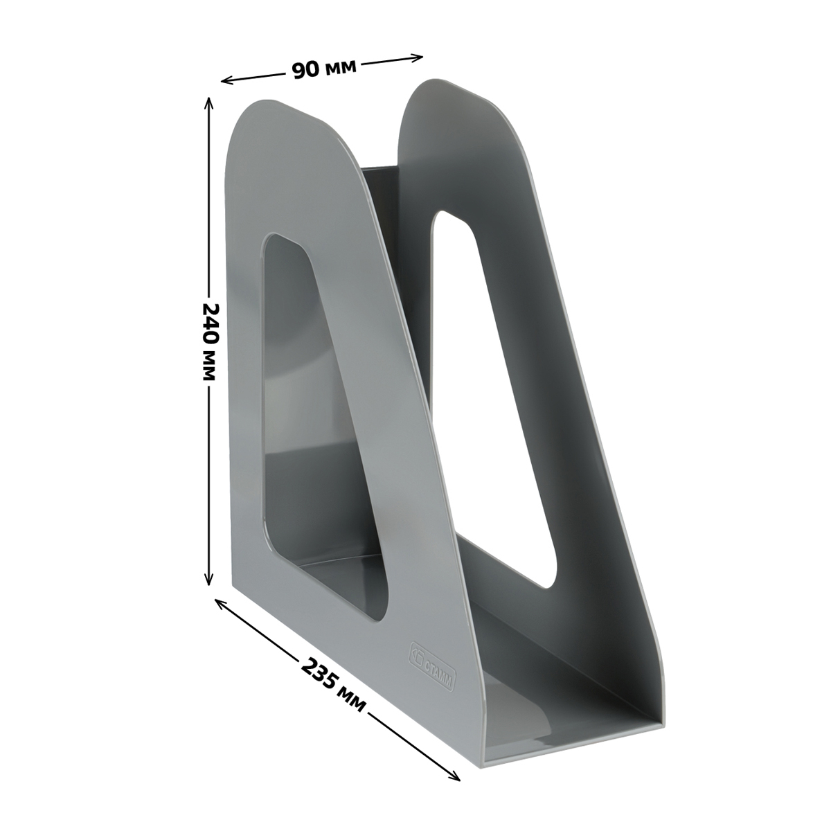 Лоток для бумаг вертикальный СТАММ "Фаворит", серый, ширина 90мм, 351555