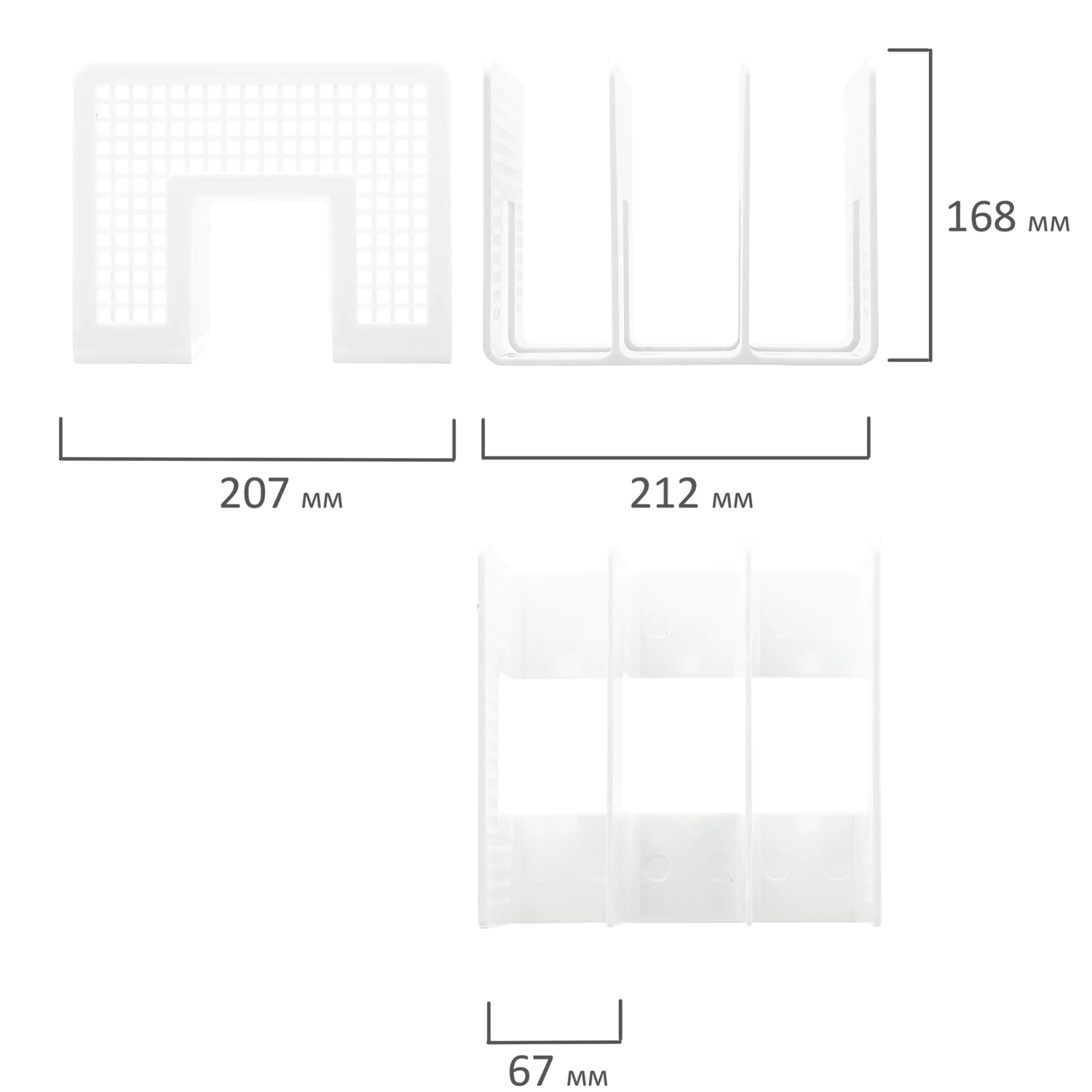 Лоток-сортер для бумаг BRAUBERG «Office-Expert», 3 отделения, 207×212×168 мм, сетчатый белый, 238023
