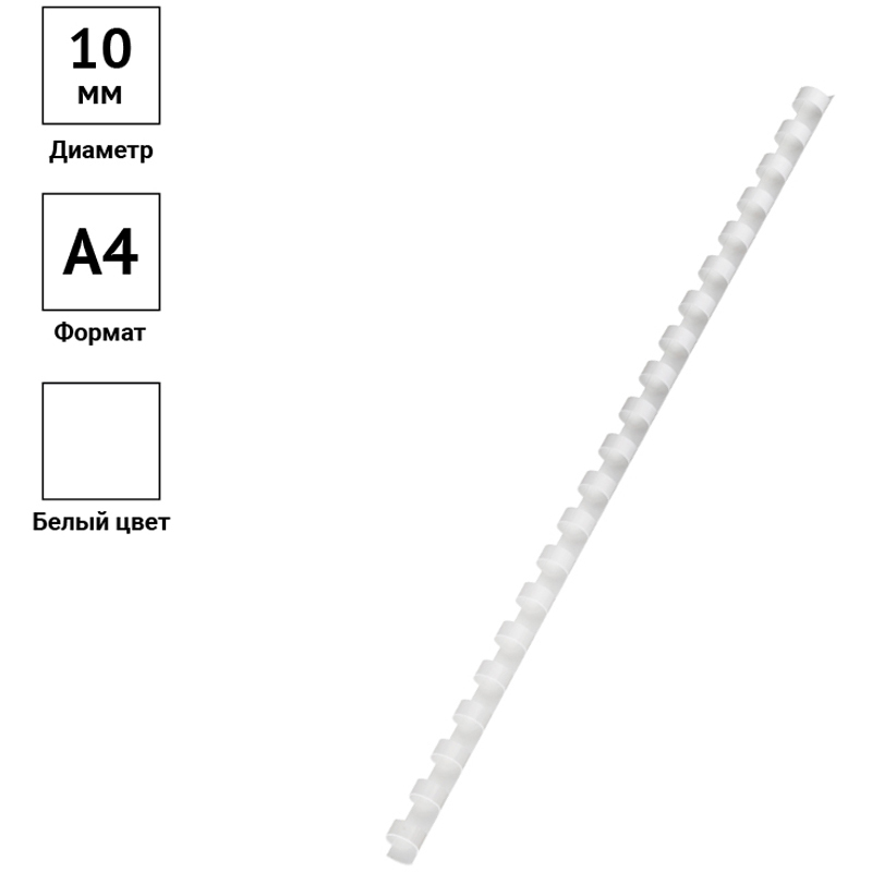 Пружины пластик D=10мм OfficeSpace, белый, 100шт., 222443