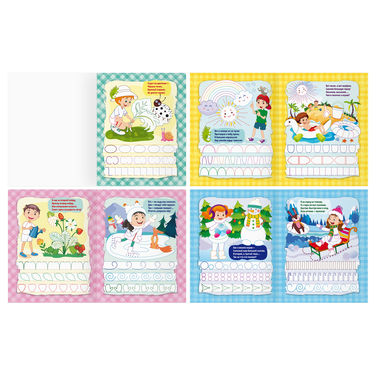 В серии «Прописи цветные. 5-6 лет»: книжки «Печатные буквы», «Подготовка к школе», «Свойства предметов», «Цифры и счёт». Кроме прописей в них увлекательные задания, стихи и игры с яркими картинками, которые обязательно понравятся детям. Прописи помогут им развить внимание, усидчивость и терпение, память. Данные пособия станут ценным ресурсом для семей, стремящихся поддерживать и развивать образовательные навыки своих детей.
