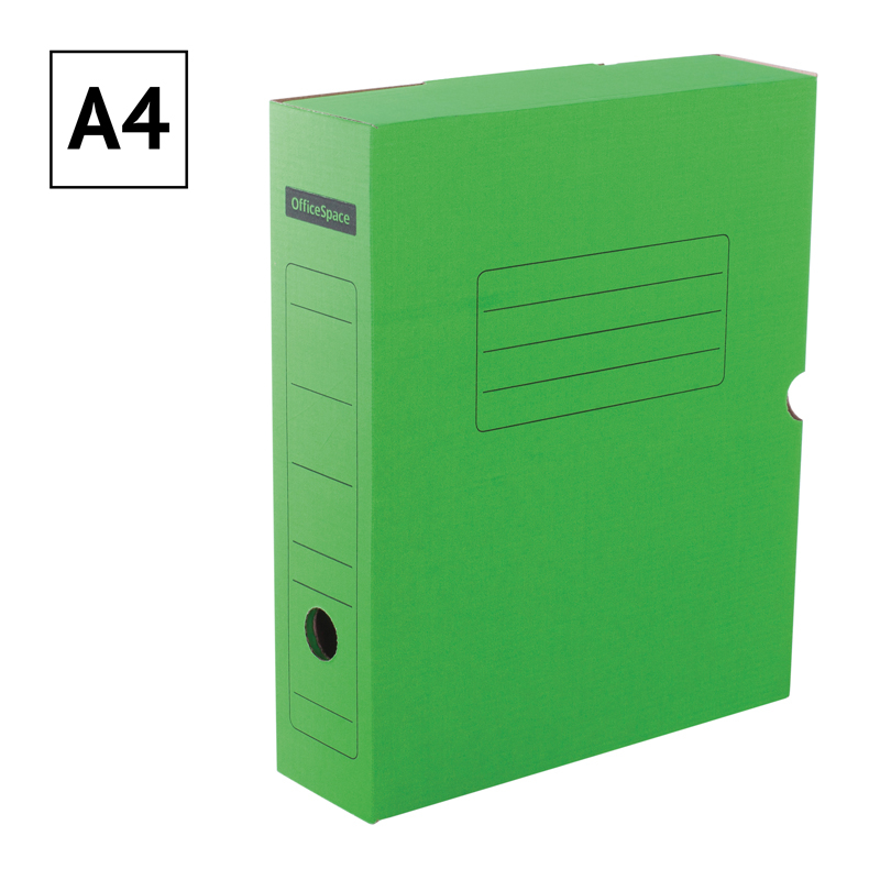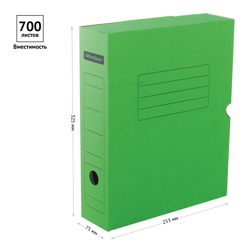 Короб архивный с клапаном OfficeSpace, микрогофрокартон, 75мм, зеленый, до 700л., 225414