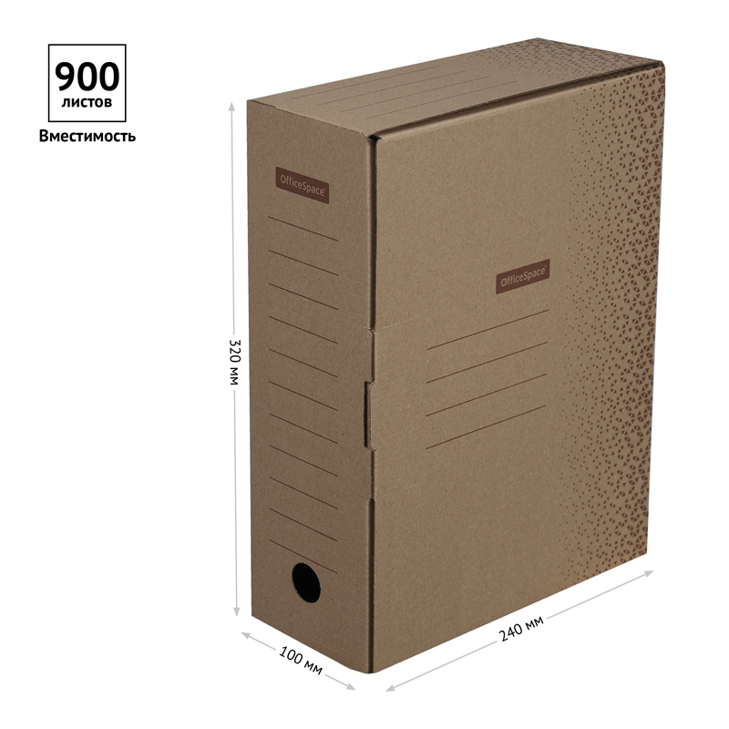 Короб архивный с клапаном OfficeSpace "Standard" плотный, микрогофрокартон, 100мм, бурый, до 900л., 264783