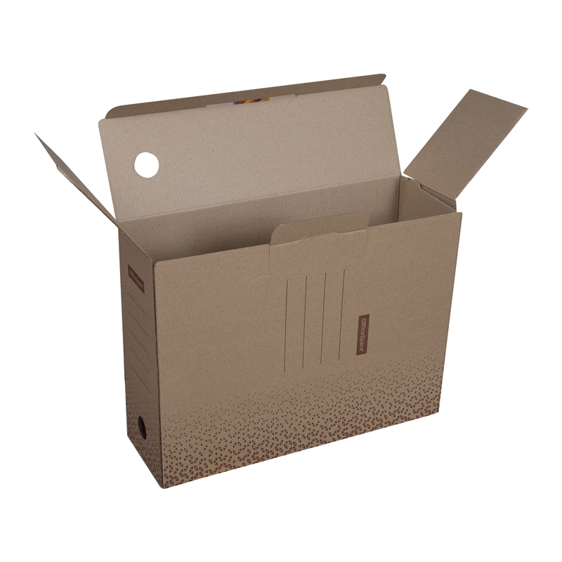 Короб архивный с клапаном OfficeSpace "Standard" изготовлен из микрогофрокартона бурого цвета. Удобен для краткосрочного хранения документации, а так же длительного архивного хранения. Прочная конструкция и стандартизованный размер позволяют хранить документы вертикально и горизонтально на стеллажах или в архивных коробах. Легкая сборка. На лицевой и всех боковых гранях имеются поля для маркировки. Ширина корешка 100 мм. Поставляется в разобранном виде.
