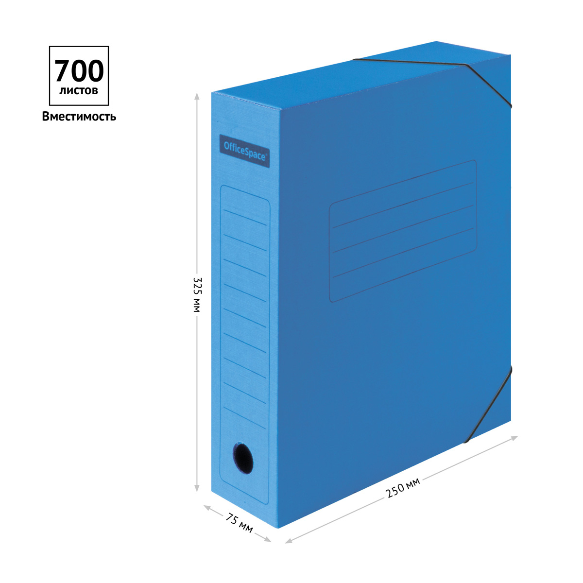 Папка архивная на резинках OfficeSpace, микрогофрокартон, 75мм, синий, до 700л., 225424