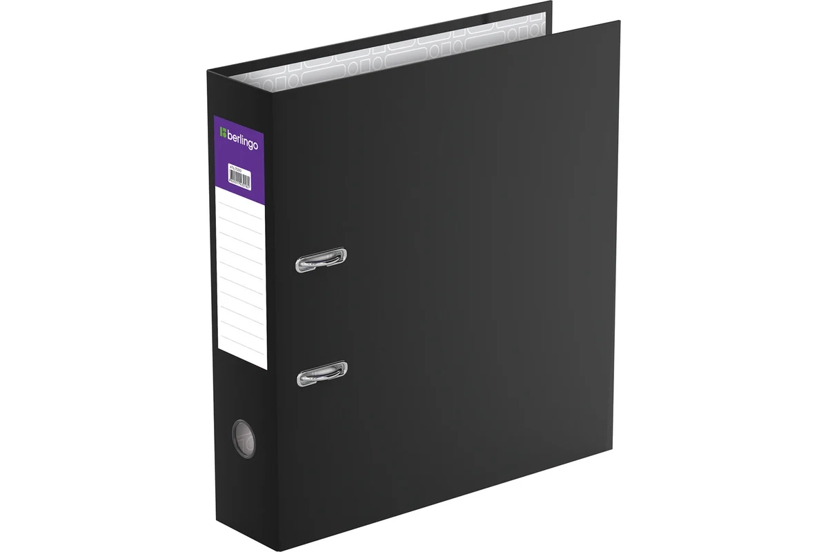 Папка-регистратор BERLINGO Profit 70 мм, бумвинил, черная ATb_70310 с арочным механизмом из жесткого износостойкого картона с односторонним покрытием из бумвинила. Эффективно экономит офисное пространство, идеальна для создания архива. Конструкция разработана с учетом всех особенностей эксплуатации. Выгодно отличается надежным арочным механизмом из качественного металла, наличием ярлыка для маркировки на корешке, полем для записей на внутренней стороне обложки, отверстием для удобного снятия папки с полки.