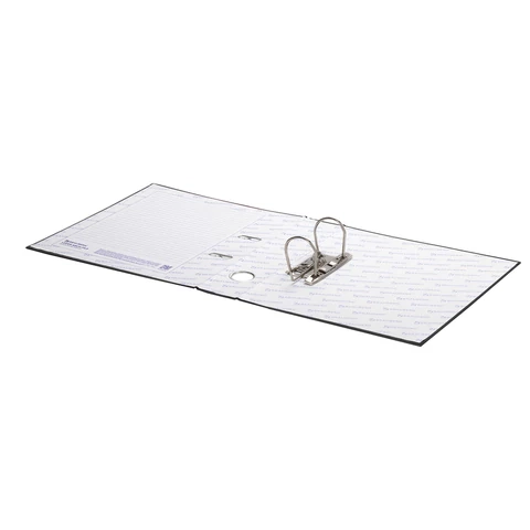Папка формата А4 с вертикальной ориентацией изготовлена из качественного износоустойчивого картона с ПВХ покрытием. Благодаря такому плотному покрытию допустима влажная уборка изделия. Ширина корешка в 50 мм позволяет разместить до 350 листов. Прорези для колец на внешней крышке позволяют оставаться папке закрытой даже при большом количестве бумаг, а надежный арочный механизм легко справляется с ежедневными нагрузками. Корешок снабжен этикеткой для маркировки содержимого, что позволяет структурировать информацию. Такая папка станет незаменимым помощником для работников с документацией, а строгий черный цвет папки-регистратора отлично впишется в офисный интерьер.
