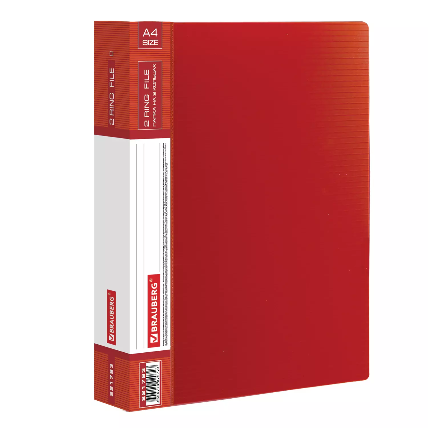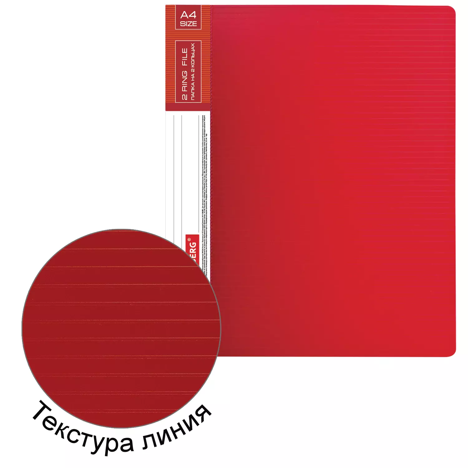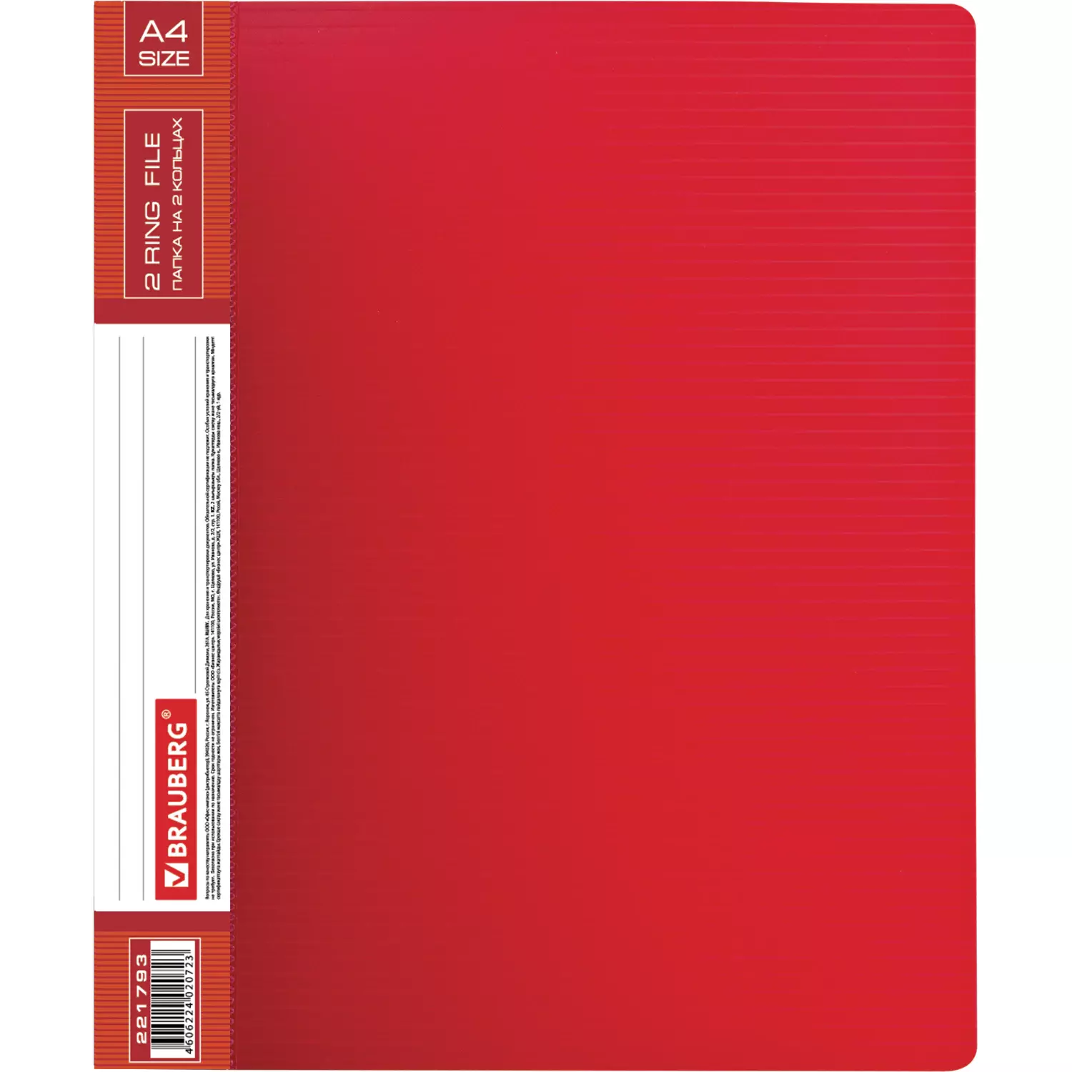 Папка стандартного формата А4 вмещает до 270 листов. Изготовлена из пластика толщиной 0,9 мм с оригинальной линейной фактурой. Допускается влажная обработка поверхности. Внутренняя сторона обложки снабжена прозрачным карманом. Для идентификации имеется бумажный корешок. Ширина корешка составляет 35 мм. Папка оснащена двумя кольцами, которые обеспечивают надежное хранение документов. В неё можно вставить файлы или проколотые дыроколом листы и, при необходимости, заменить их на другие.