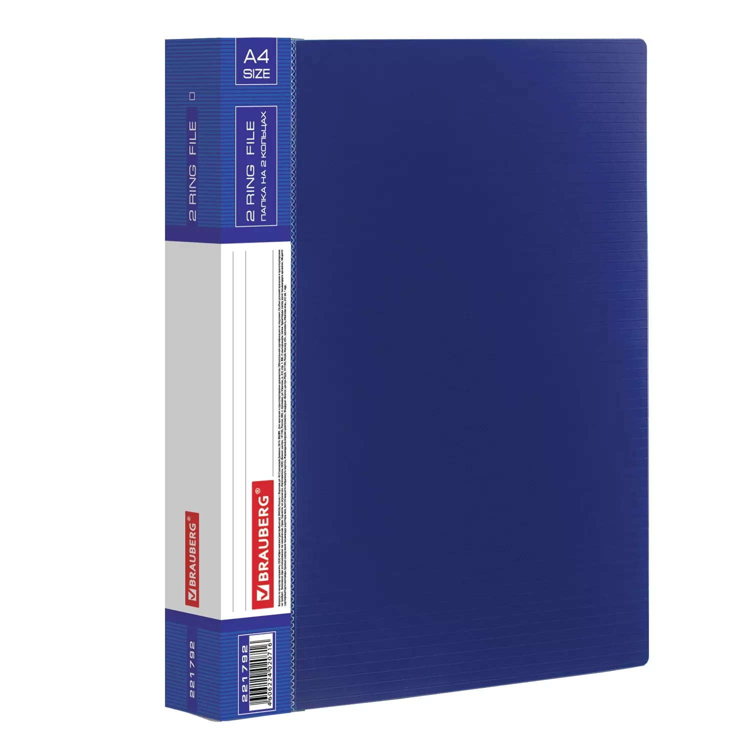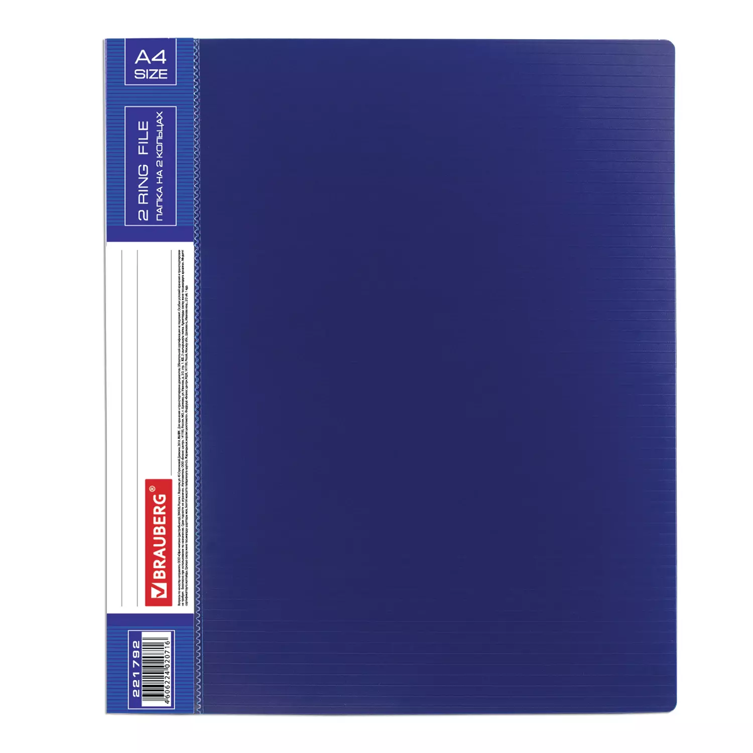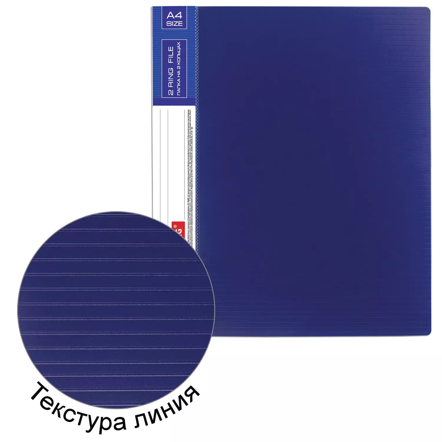 Папка стандартного формата А4 вмещает до 270 листов. Изготовлена из высококачественного пластика толщиной 0,9 мм с оригинальной линейной фактурой. Допускается влажная обработка поверхности. Внутренняя сторона обложки снабжена прозрачным карманом. Для идентификации имеется сменный бумажный корешок. Ширина корешка составляет 35 мм. Папка оснащена двумя кольцами, которые обеспечивают надежное хранение документов. В неё можно вставить файлы или проколотые дыроколом листы. и, при необходимости, заменить их на другие. Каждая папка упакована в индивидуальный пакет.