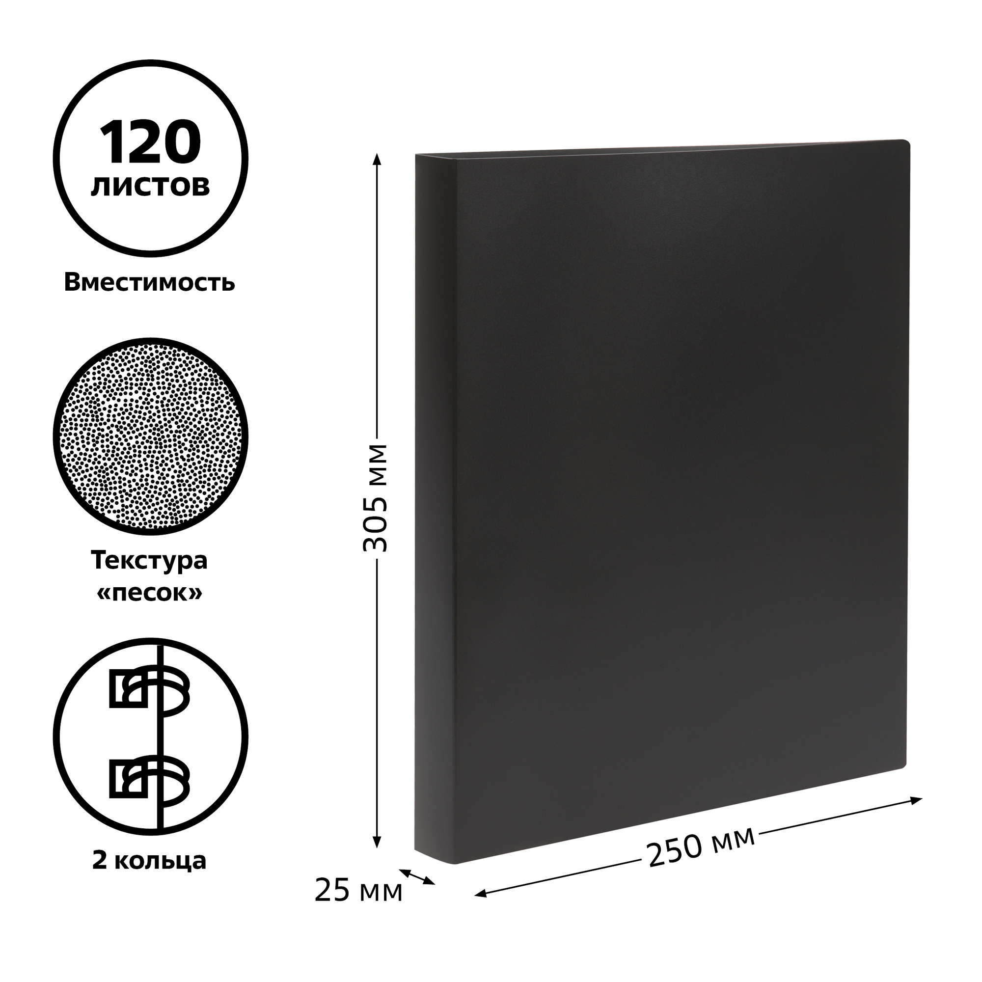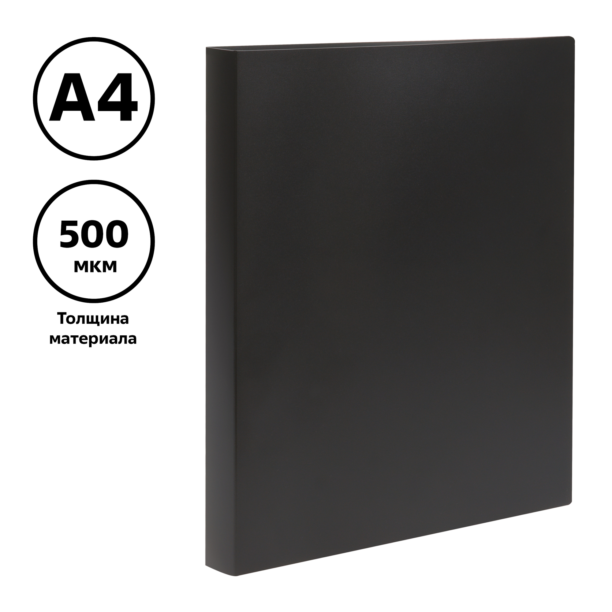 Папка на 2 кольцах СТАММ А4, 25мм, 500мкм, пластик, черная, 343105