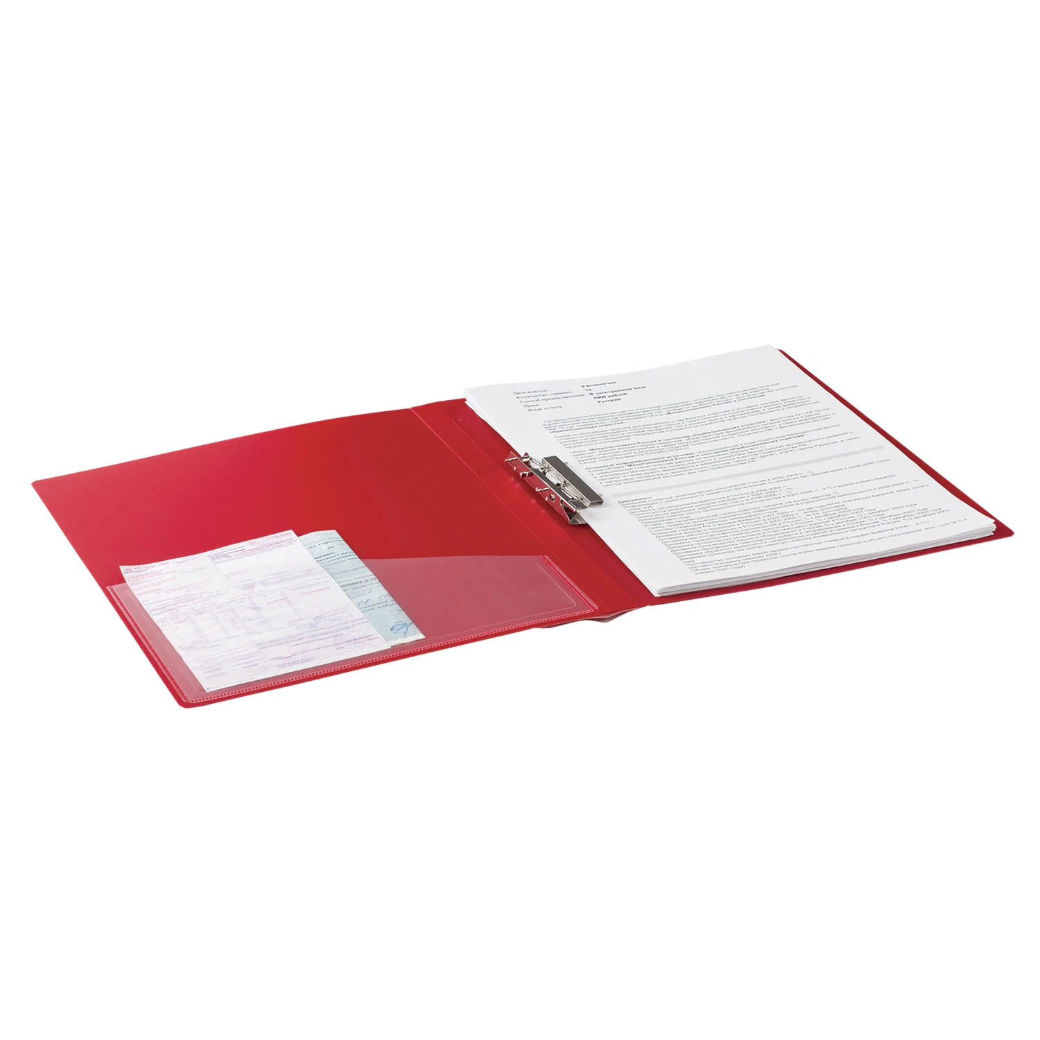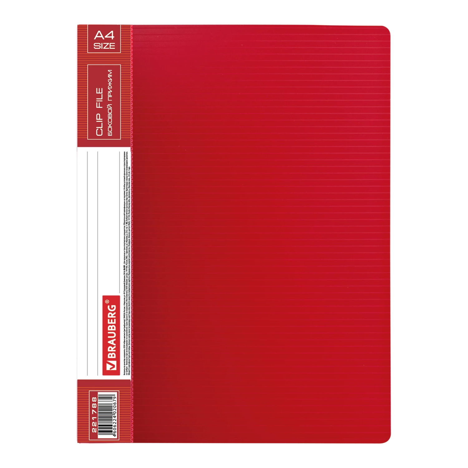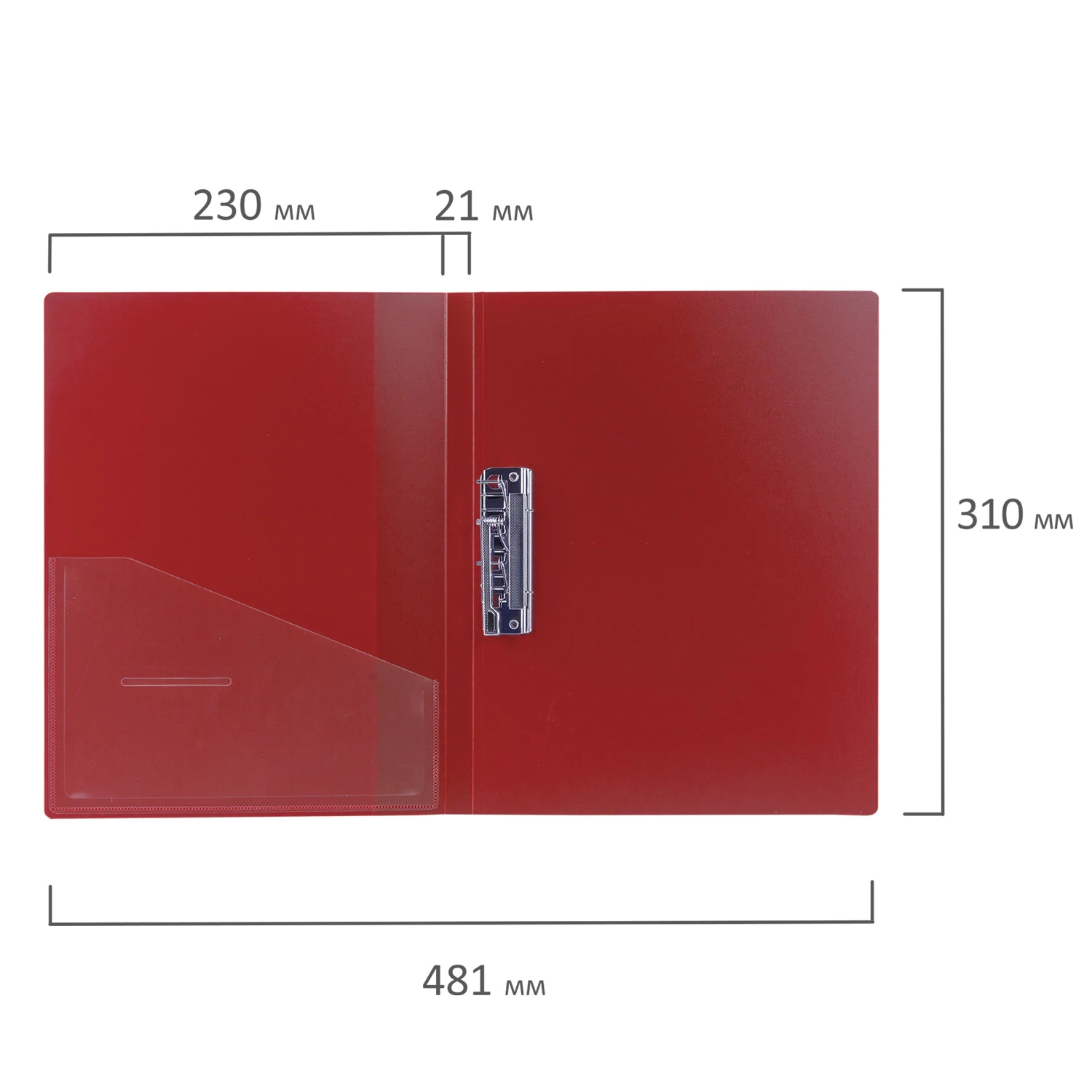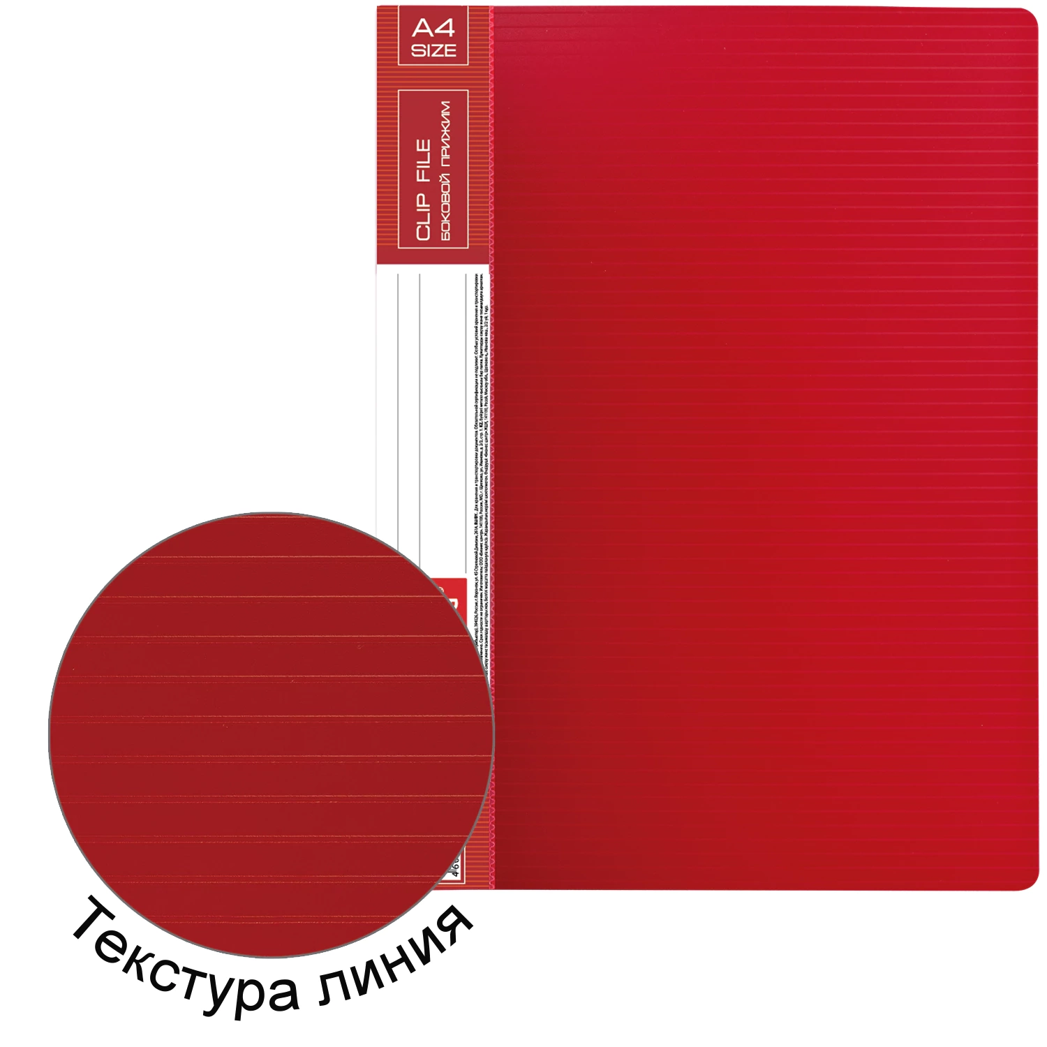 Изготовлена из высококачественного пластика толщиной 0,7 мм с оригинальной линейной фактурой. Обеспечивает хранение до 100 листов формата А4. Снабжена боковым прижимом и прозрачным внутренним карманом. Для идентификации имеется сменный бумажный корешок. Представлена в красном цвете.