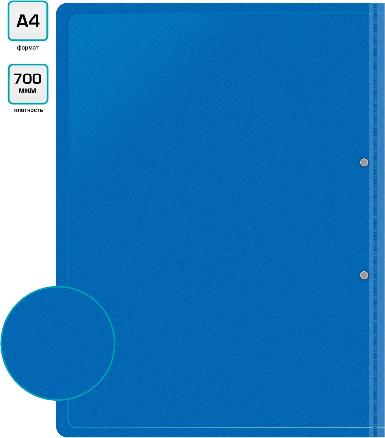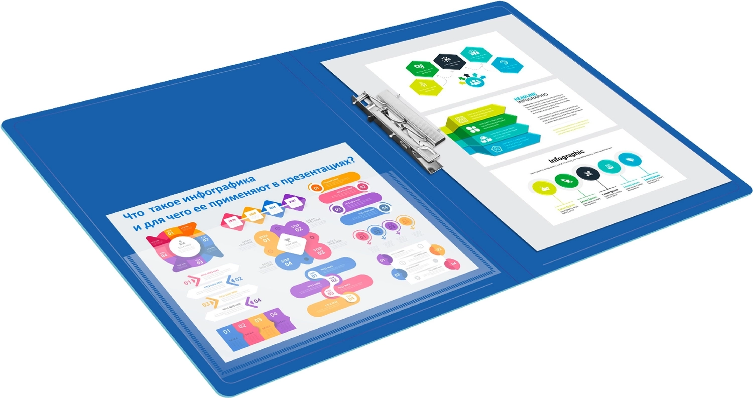 Предназначена для хранения документов. Металлический прижим позволяет подшивать документы, не перфорируя их дыроколом. Снабжена прозрачным карманом. Изготовлена из плотного непрозрачного пластика.