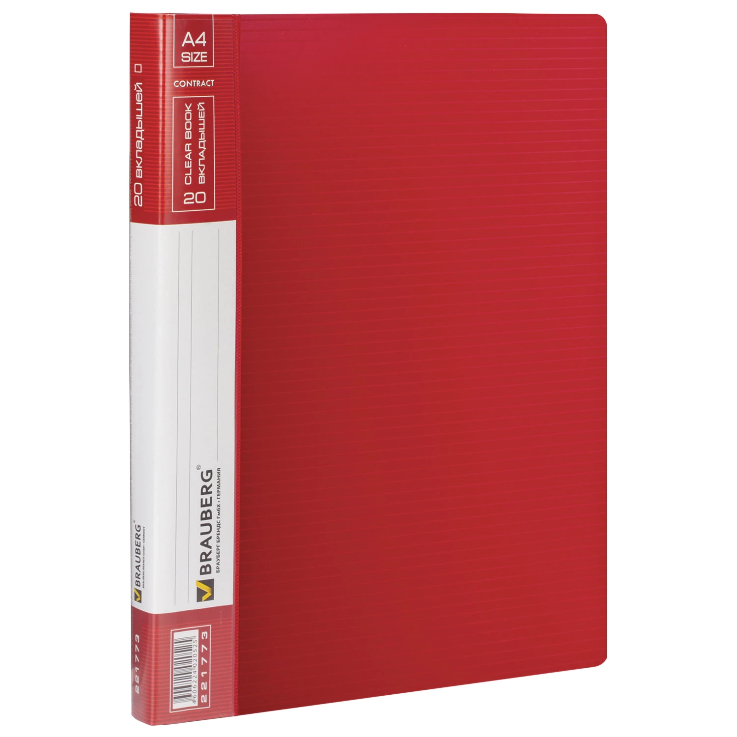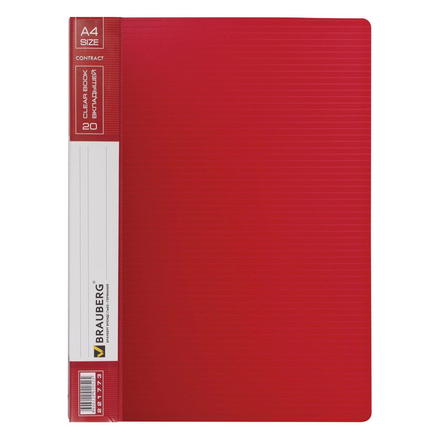 Папка 20 вкладышей BRAUBERG «Contract», красная, вкладыши-антиблик, 0,7 мм, бизнес-класс, 221773