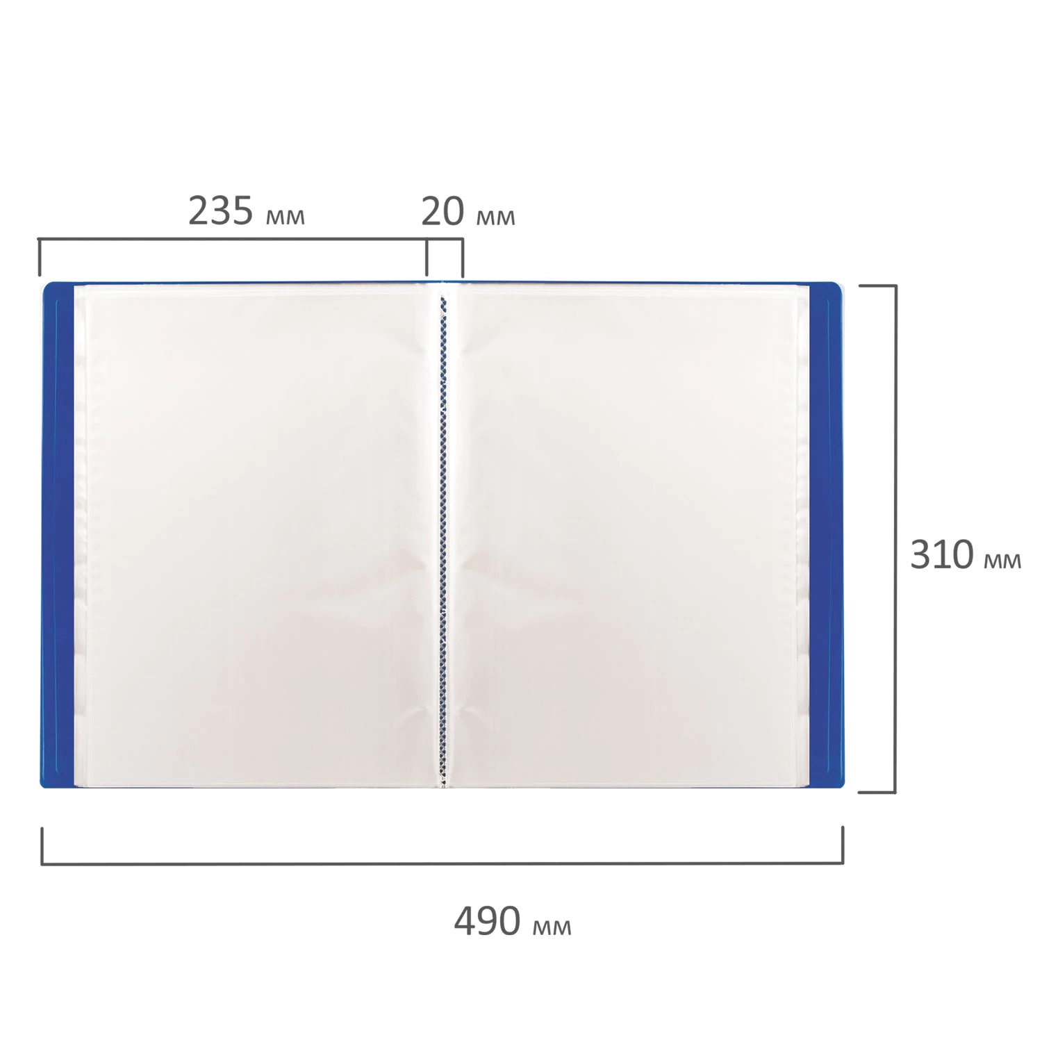 Для маркировки содержимого на корешок наклеена этикетка. Папка изготовлена из пластика толщиной 0,5 мм с антибликовой фактурой, а ширина корешка составляет 20 мм. Содержит 30 вкладышей, позволяющих хранить документы формата А4 и обеспечивающих их надежную защиту от попадания влаги, пыли и прочих повреждений.