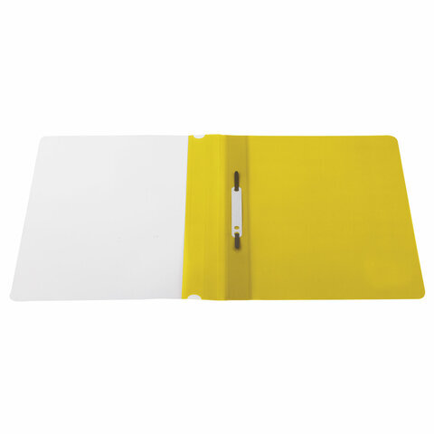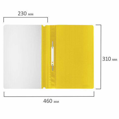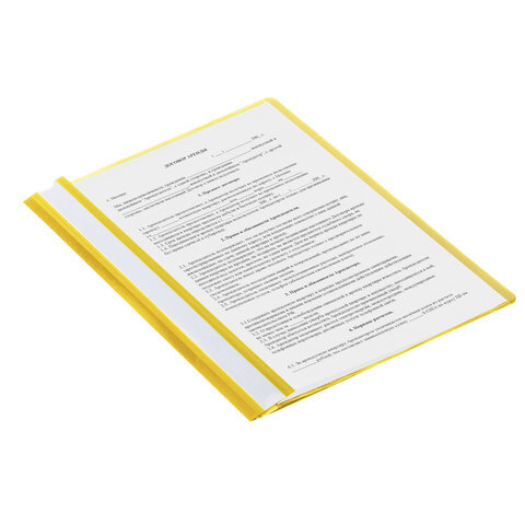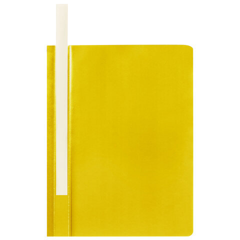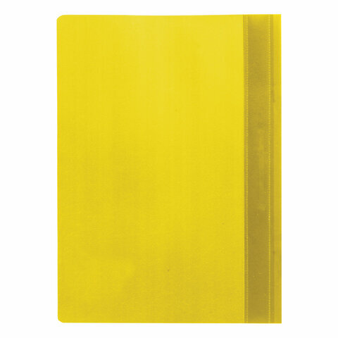 Фиксирует до 100 листов формата А4. Толщина пластика верхнего листа составляет 100 мкм, а нижнего - 120 мкм. Предельно простой механизм подшивки: металлические усики и пластиковая планка для надежной фиксации документов. Скоросшиватель изготовлен из качественного полипропилена. Прозрачный верхний лист позволяет определить содержимое, не открывая скоросшиватель, который к тому же снабжен сменным пластиковым корешком, что дает возможность структурировать информацию. Благодаря гладкой фактуре и яркому желтому цвету обложки папка никогда не затеряется на полке.