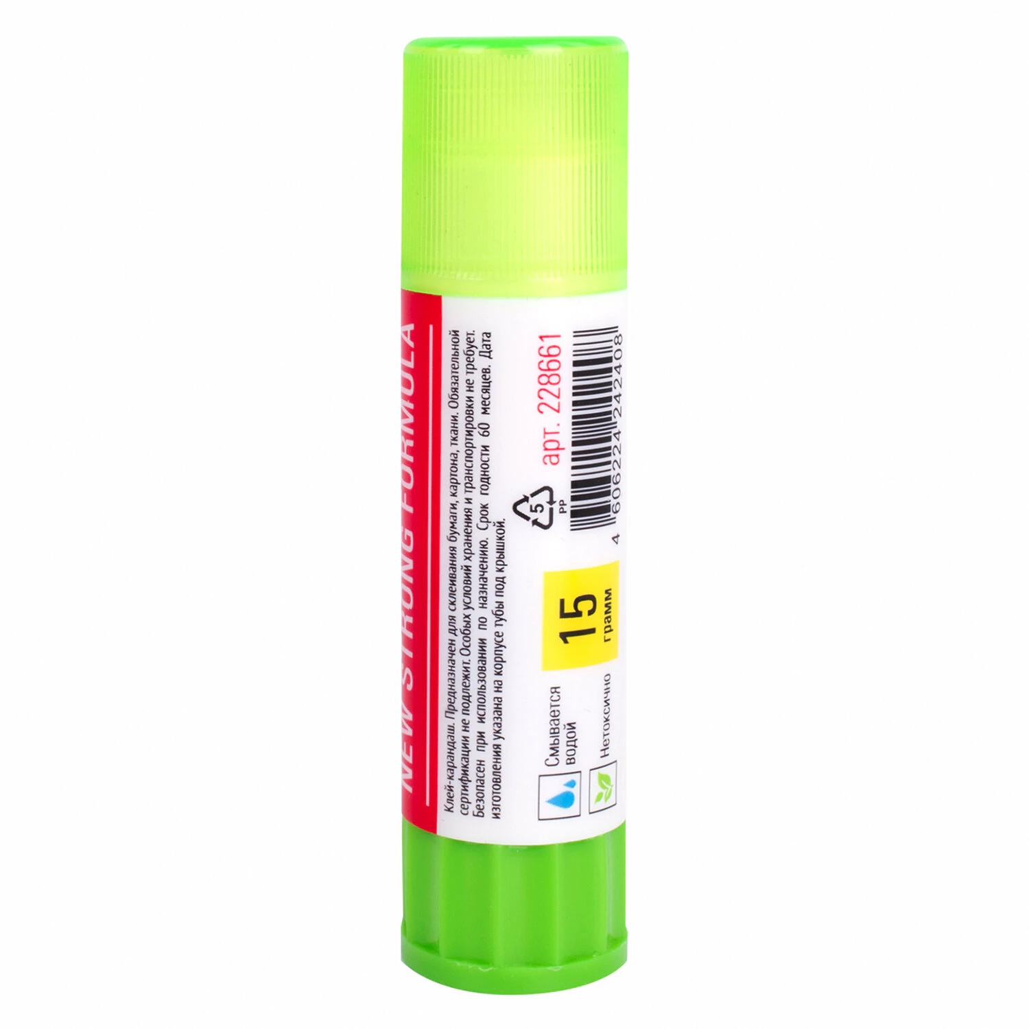 PVP-основа. После нанесения высыхает без образования пятен. Не токсичен, не вызывает аллергии и безопасен для здоровья. Легко наносится и распределяется по поверхности, оставляя тонкий и ровный клеевой слой, что позволяет расходовать его экономично. Клей удобен в использовании. Он не пачкает руки, стол, одежду, не попадает на участки бумаги, расположенные возле места склеивания. Обеспечивает быстрое и надежное склеивание. Оптимальный объем — 15 г. Увеличенный срок годности — 5 лет.