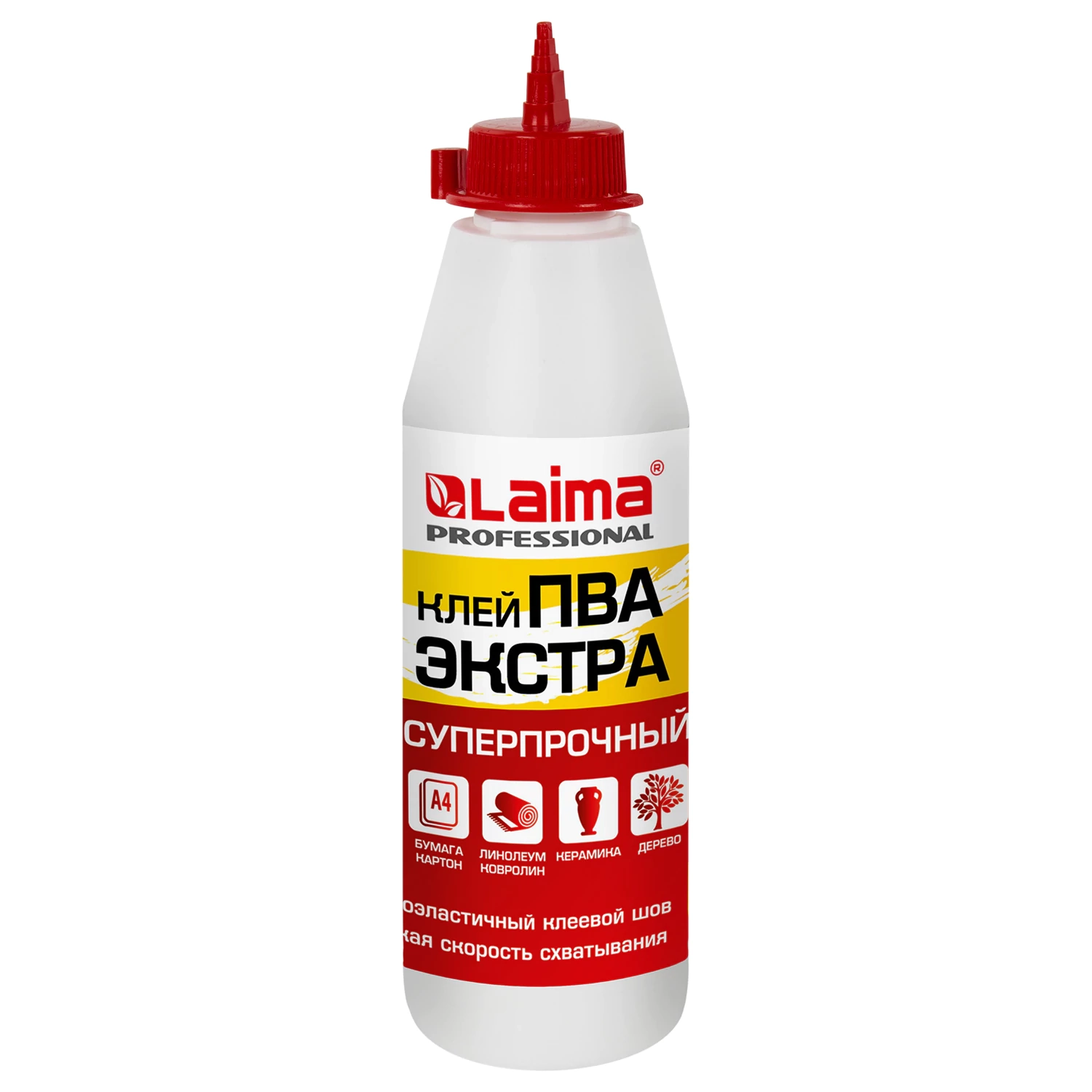 Клей ПВА Экстра Суперпрочный 0,5 кг (керамика, ткань, кожа, дерево, бумага, картон), LAIMA, 606430