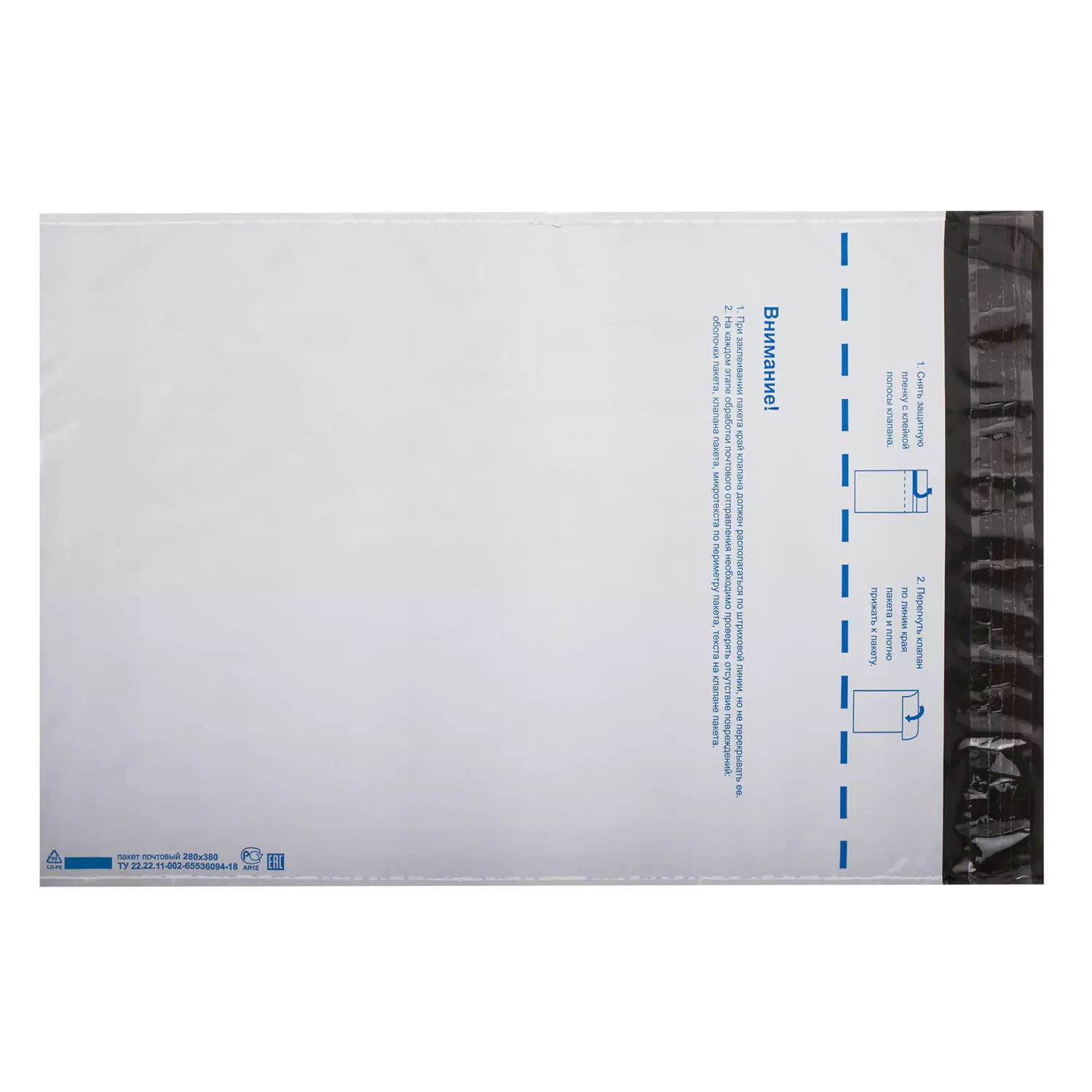 Конверт-пакеты формата Е4 способны вмещать до 500 листов. Изготовлены из особо прочного 5-слойного полиэтилена. Нанесение информации возможно шариковой ручкой. На передней стороне конверта имеются адресные указатели: «От кого», «Откуда», «Кому», «Куда». Отрывная полоса типа STRIP обеспечивает легкое запечатывание пакета. Поставляются по 50 штук в упаковке. Инструкция по применению: 1. Перед вложением чего-либо в пакет, необходимо заполнить информационные поля на его лицевой стороне. 2. После того, как завершено вложение документов (и других объектов) в пакет, необходимо оторвать защитную ленту STRIP с клеевого слоя. Для обеспечения снятия защитной ленты, необходимо отогнуть его нижний, свободный от клея уголок (с правого или левого края), захватить его пальцами и оторвать ленту от клеевого слоя, одновременно прижимая другой рукой сам пакет. 3. Затем необходимо перегнуть клапан «на себя» и плавным движением обеих рук от середины к краям равномерно прижать клапан к тыльной стенке пакета. После этого еще раз разгладить клапан, прижимая его и обеспечивая прочность склеивания. 4. Максимальная (рабочая) степень адгезии клеевого слоя достигается через 10-15 минут после приклеивания клапана. ВНИМАНИЕ!!! 1. После снятия защитной ленты открывается клеевой слой клапана. Во избежание складок, морщин, пузырей и т.д., при перегибании и наклеивании клапана следует выровнять тыльную стенку пакета и не браться пальцам за клеевой слой. Неправильно заклеенный (не по всей ширине клеевого слоя, с загрязненным клеевым слоем, со значительными складками, пузырями и пр.) пакет непригоден к использованию по назначению. 2. Повторное приклеивание клапана и использование конверт-пакета невозможно. 3. Заклеивание следует выполнять при положительной температуре материала пакета (клеевого слоя). При отрицательных температурах клапан к материалу не приклеится.