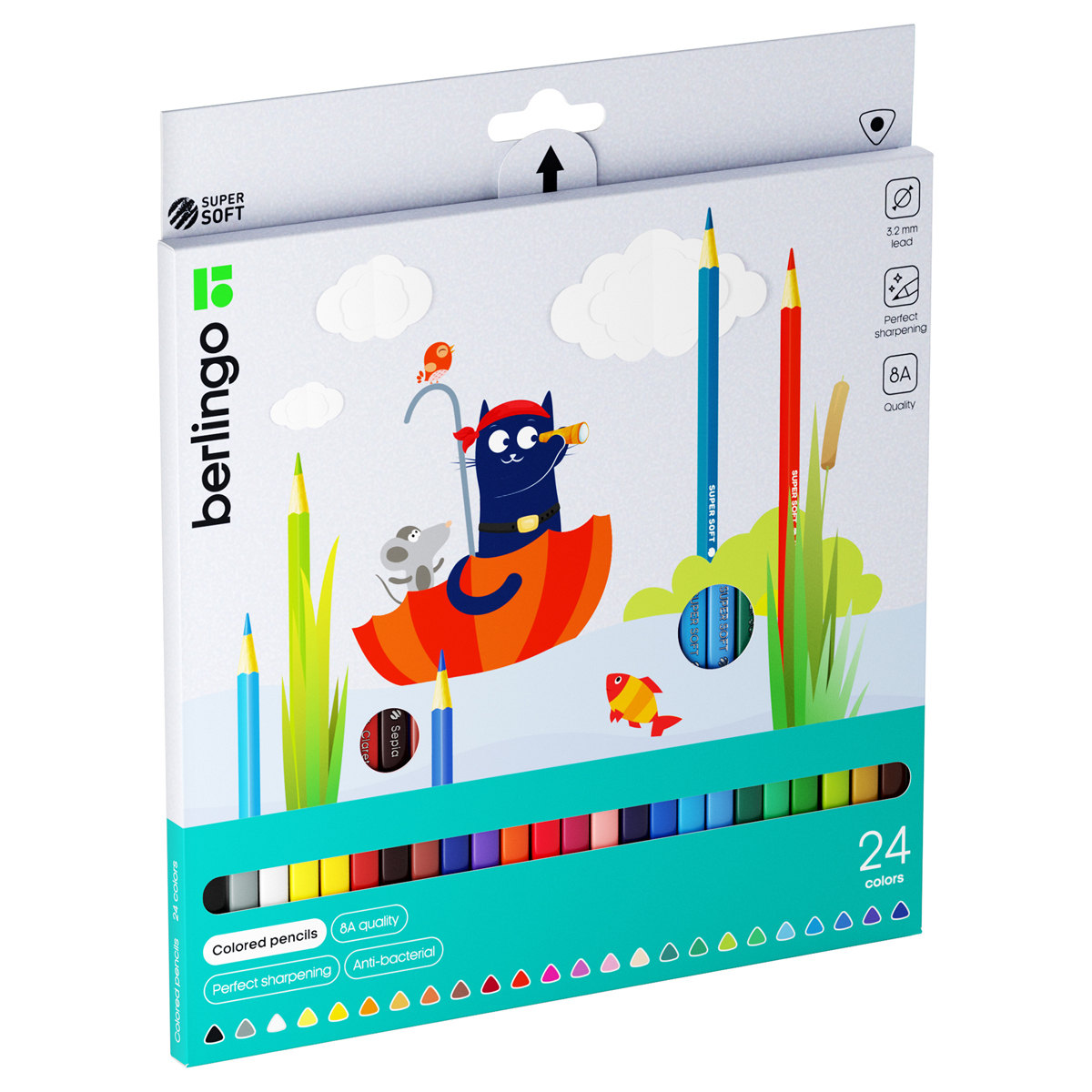 Карандаши цветные Berlingo "SuperSoft. Жил-был кот", 24цв., трехгран., заточен., картон, европодвес, 297238