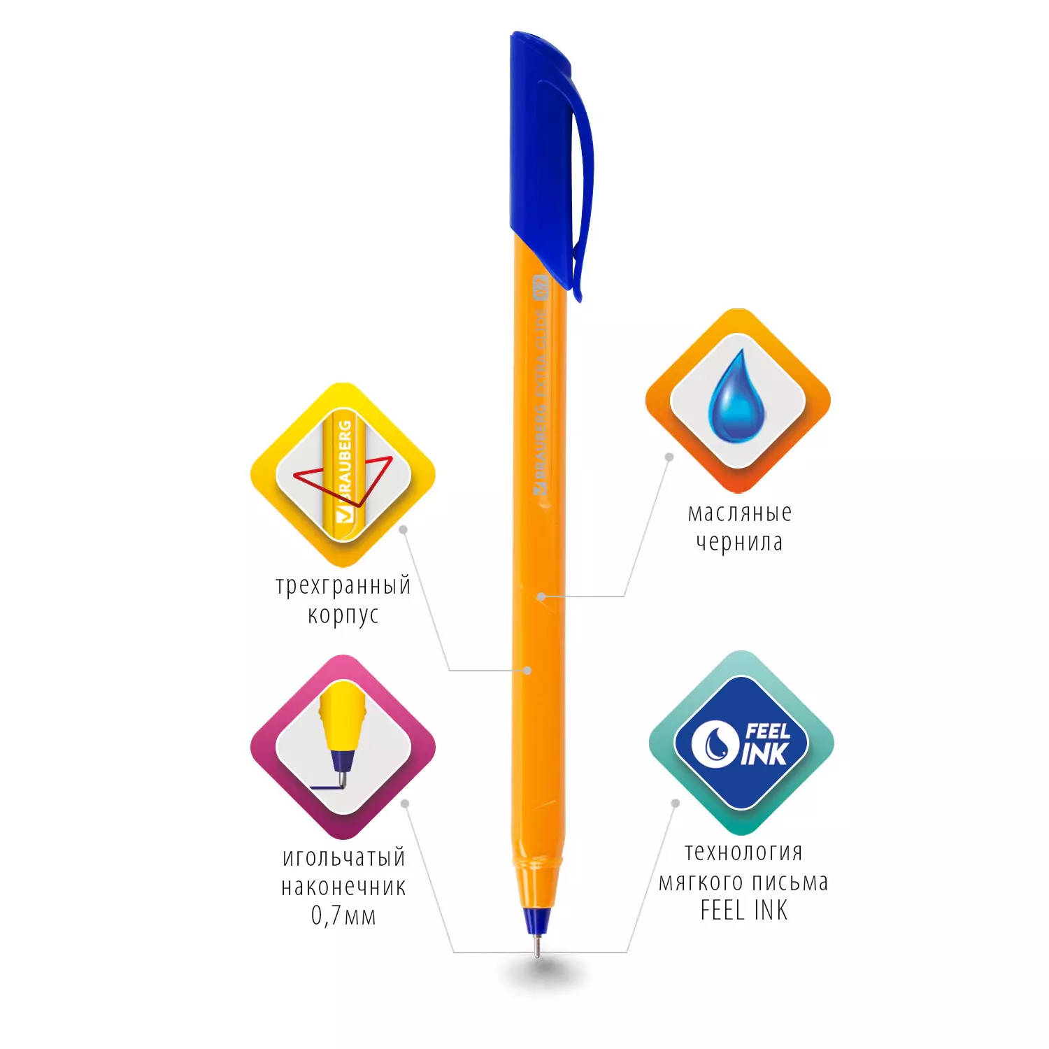 Ручка шариковая масляная BRAUBERG «Extra Glide Orange», СИНЯЯ, трехгранная, узел 0,7 мм, линия письма 0,35 мм, 142925