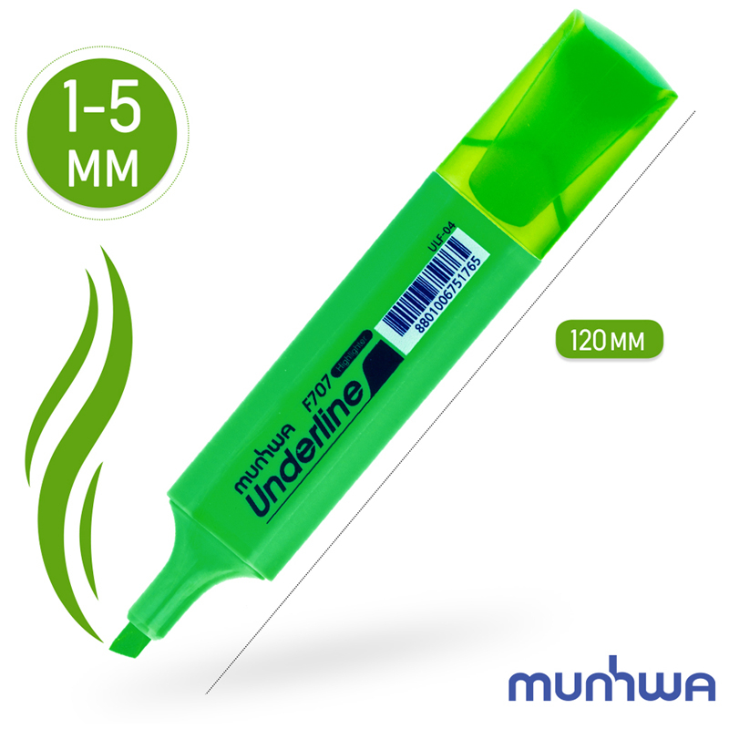 екстовыделитель MunHwa "UnderLine" зеленый, 1-5мм, 234210