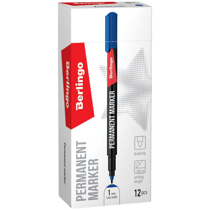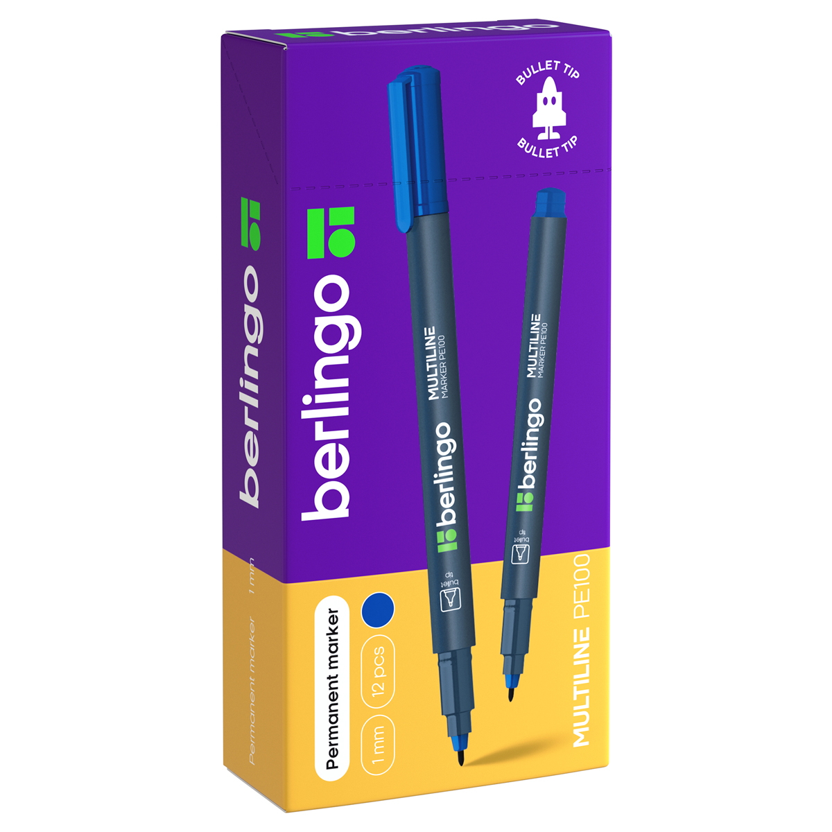 Маркер перманентный Berlingo "Multiline PE100" синий, пулевидный, 1мм, 117149