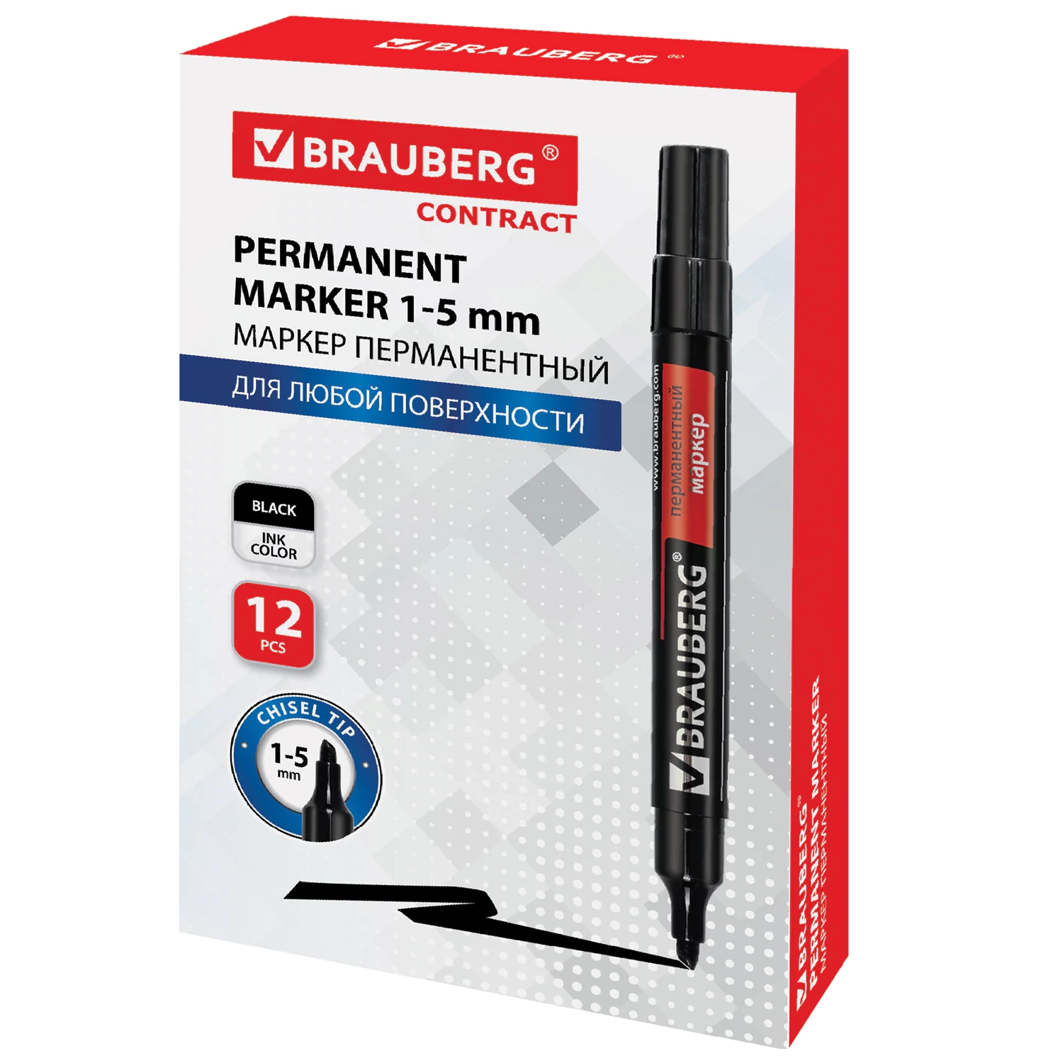 Маркер перманентный BRAUBERG «Contract», ЧЕРНЫЙ, скошенный наконечник, 1-5 мм, 150469