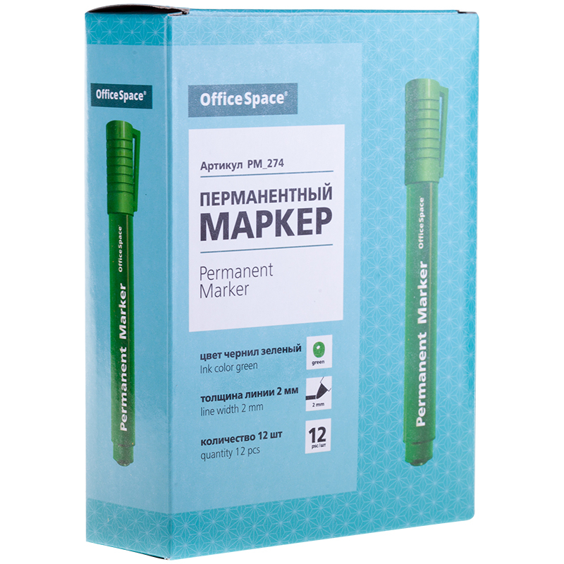 Маркер перманентный OfficeSpace "8004" зеленый, пулевидный, 2мм, 158729