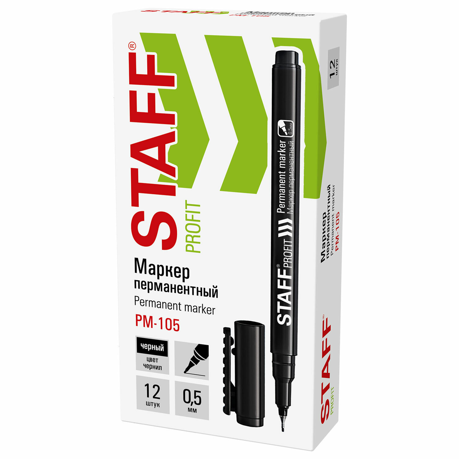 Маркер перманентный STAFF «Profit PM-105», ЧЕРНЫЙ, тонкий металлический наконечник 0,5 мм, 152170
