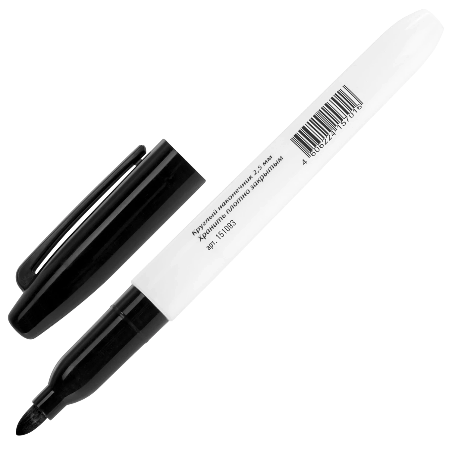 Маркер для доски черного цвета обладает круглым пластиковым корпусом диаметром 17 мм. Наконечник круглой формы обеспечивает толщину линии письма 2-5 мм в зависимотси от угла наклона, что позволяет писать как мелким, так и крупным шрифтом. Благодаря спиртовой основе чернила быстро высыхают и не оставляют разводов, легко стираются сухой губкой. Изделие не перезаправляется. Цвет колпачка соответствует цвету чернил. Это товар эконом-сегмента, поэтому он отличается привлекательной ценой. Товар обладает базовым набором характеристик и простой упаковкой, при этом полностью соответствует основным требованиям потребителей.