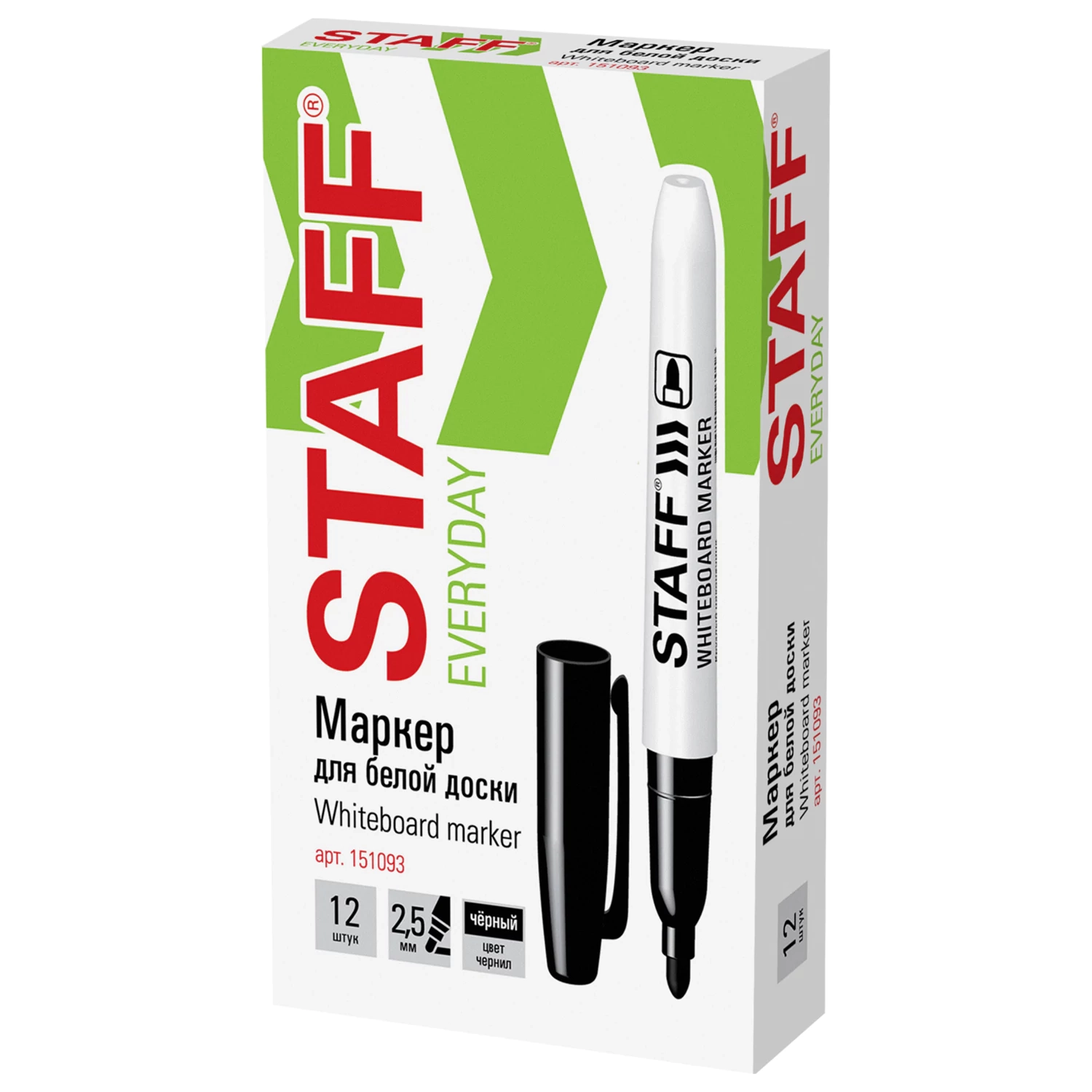Маркер стираемый для белой доски STAFF «EVERYDAY» WBM-093, ЧЕРНЫЙ, 2,5 мм, тонкий корпус, 151093
