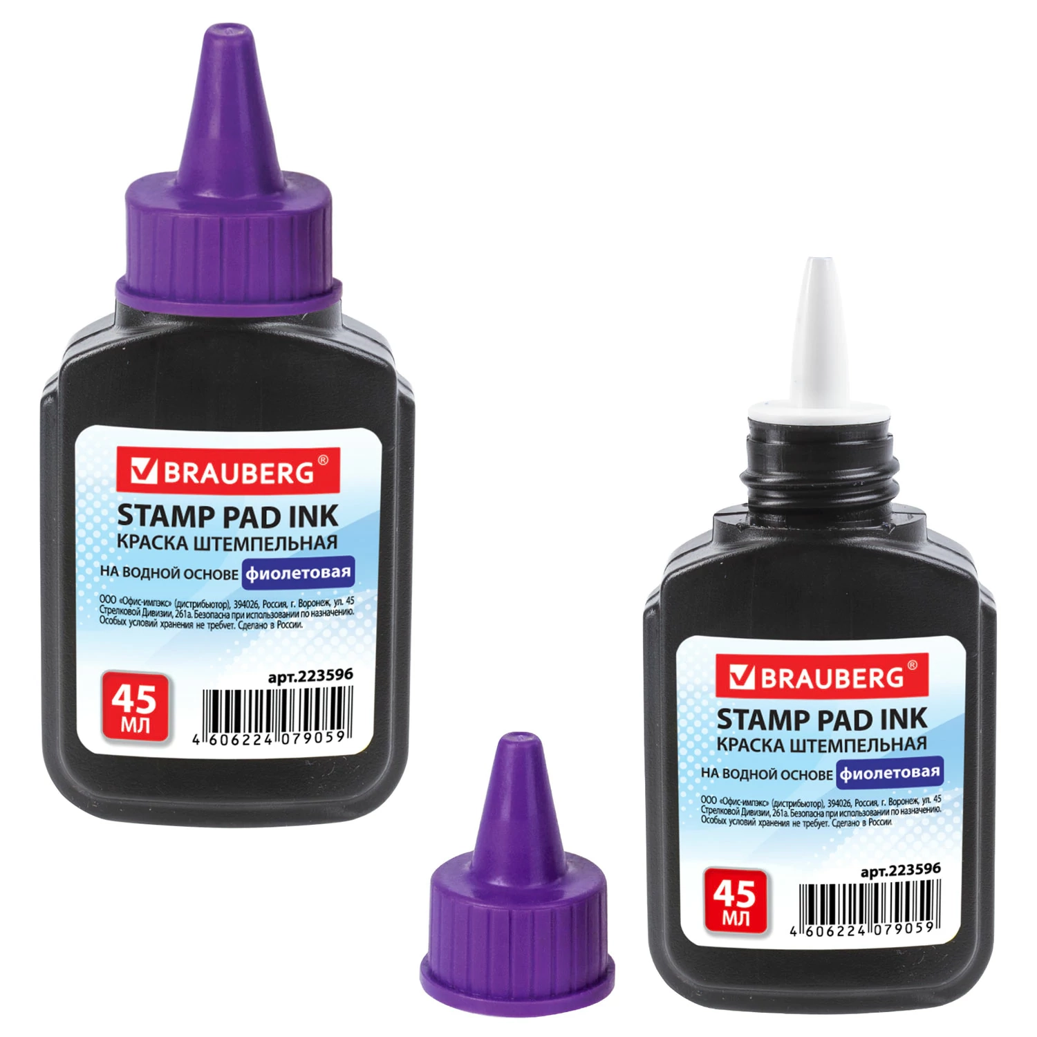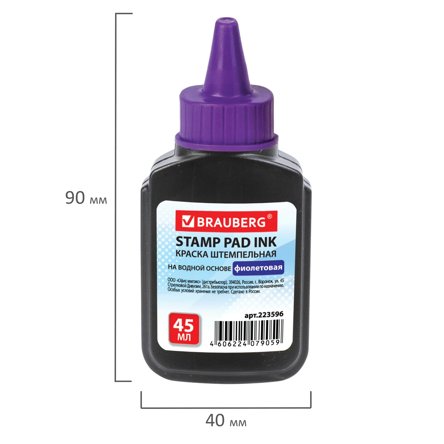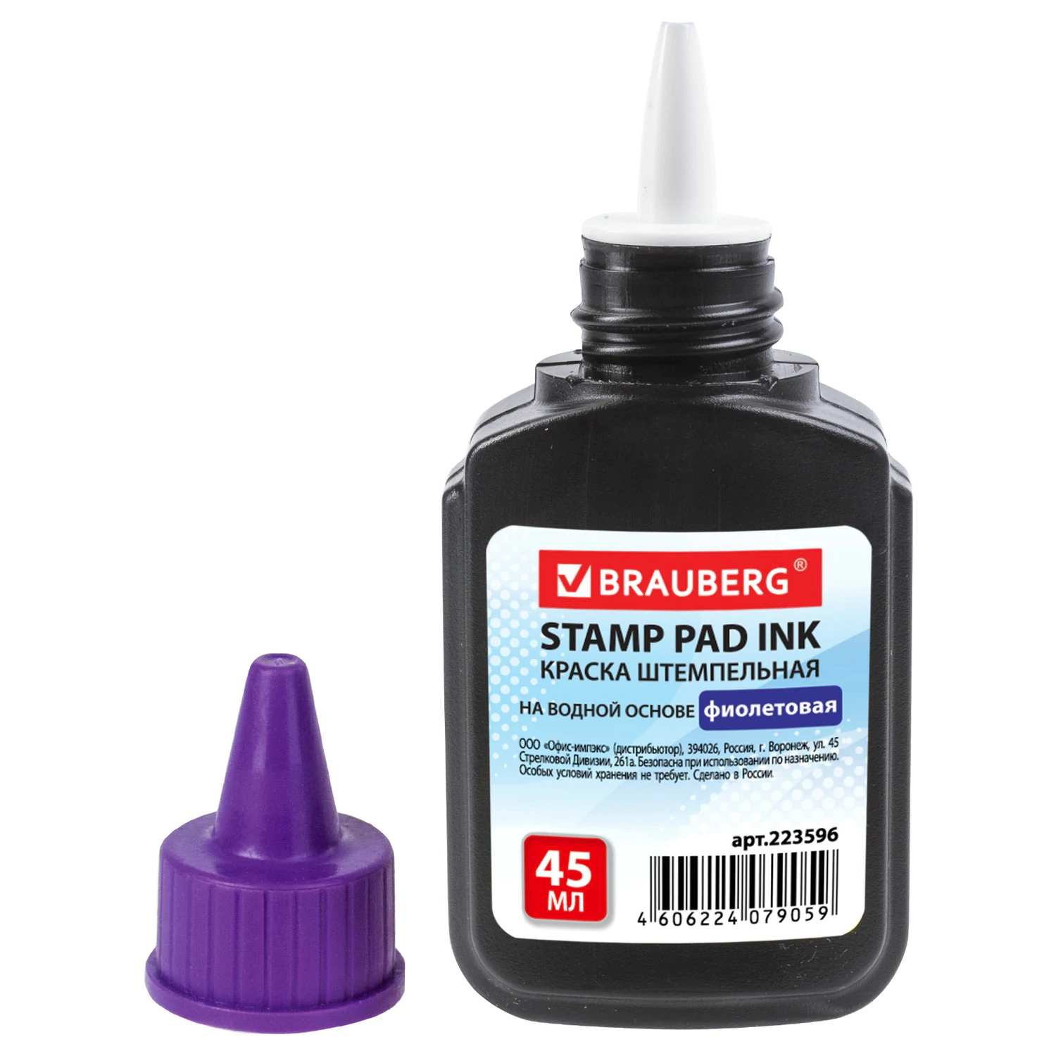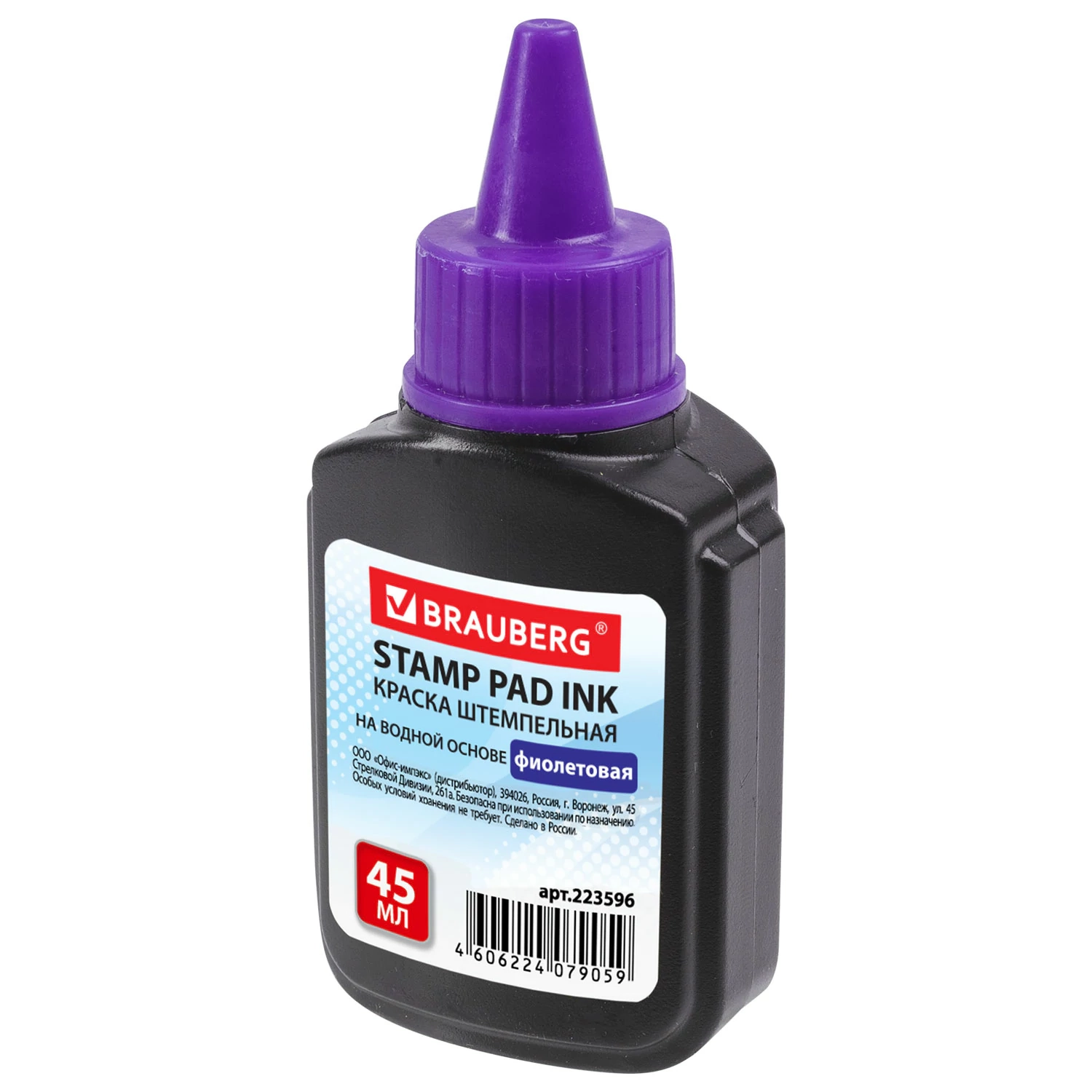 Краска штемпельная BRAUBERG, фиолетовая, 45 мл, на водной основе, 223596