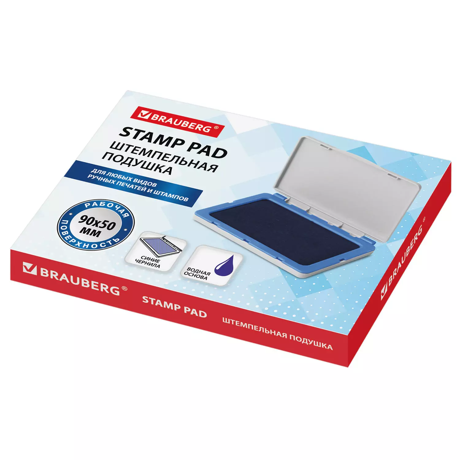 Штемпельная подушка BRAUBERG, 100×80 мм (рабочая поверхность 90×50 мм), синяя краска, 236867