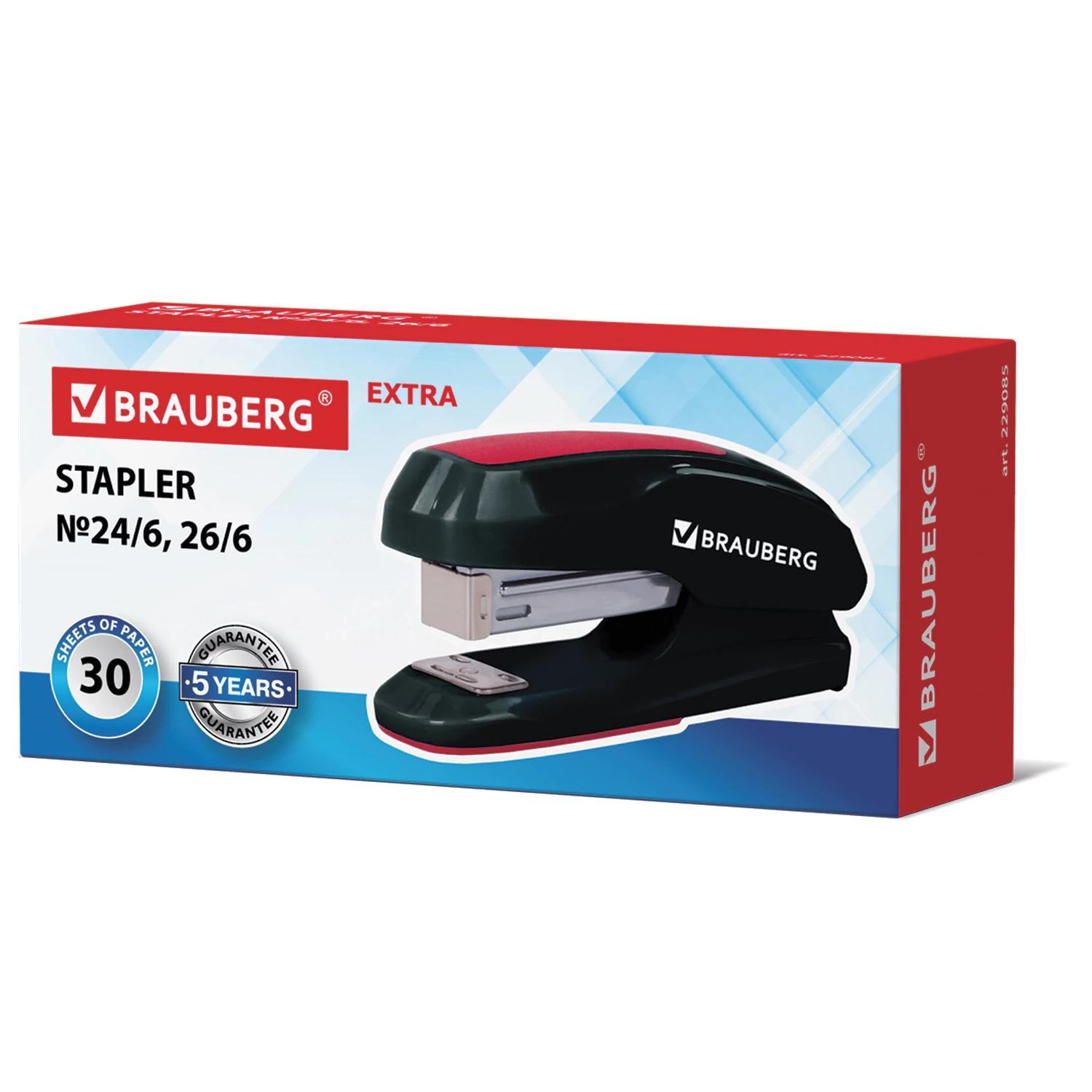 Степлер №24/6, 26/6 BRAUBERG «Extra», до 30 листов, черно-красный, 229085